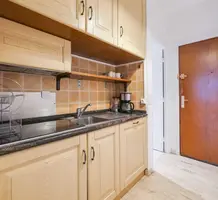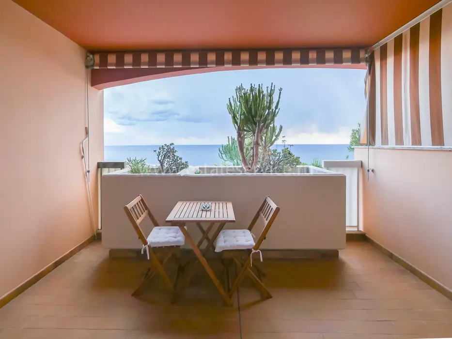 Квартира на первом приподнятом этаже здания поблизости от границы с Монако. Жилая площадь 30 m² - прихожая с мини-кухней, гостиная с панорамной террасой-лоджией 9 m² и ванная комната с туалетом. Приличное состояние, реверсивный кондиционер, можно купить гараж и кладовую в подвале - 70.000 €. Коммунальные платежи 75 €, годовой налог 840 €.