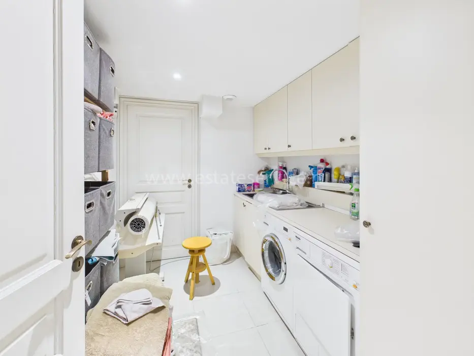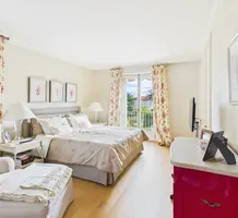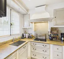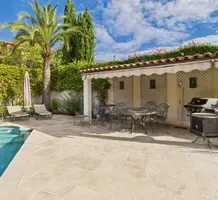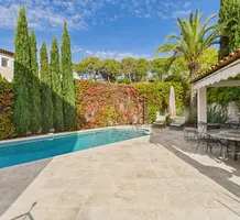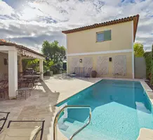 Пятикомнатная ухоженная вилла в престижном безопасном кондоминиуме. Жилая площадь дома 119 m² + подвал 70 m² и гараж, на первом уровне - прихожая, двойная гостиная 33.5 m² с застекленной верандой 13.2 m², отдельная кухня 6.8 m², кабинет/библиотека 6.4 m² и гостевой санузел. Наверху разместились три просторные спальни 13.9, 14.6 и 19.8 m², ванная комната с туалетом, душевая и отдельный туалет. На цокольном этаже площадью 70 m² оборудован тренажерный зал 19.8 m², прачечная 6.3 m², кладовая, винный погреб и помещение 14.4 m² под инвентарь бассейна. Отличное состояние, частный бассейн, планировка продуманна и функциональна, есть гараж и открытая парковка. Коммунальные платежи 82 €, годовой налог 2.511€.