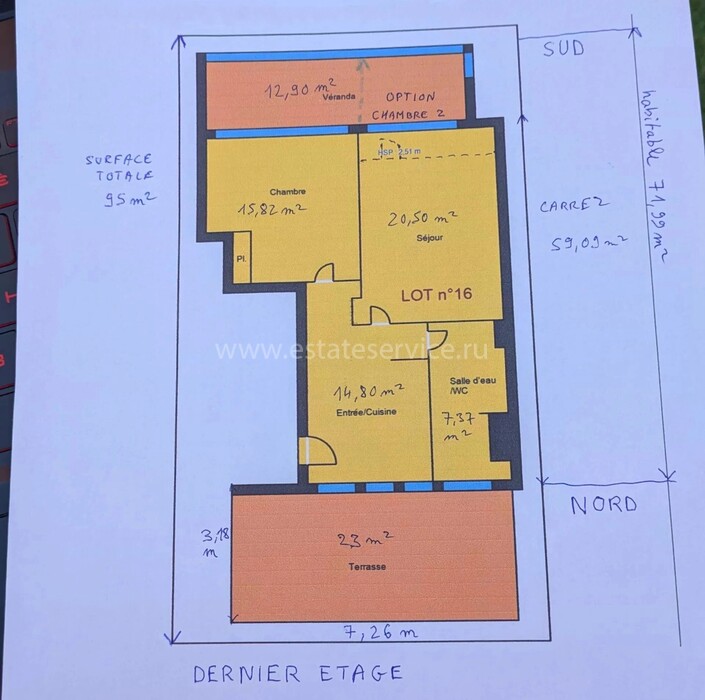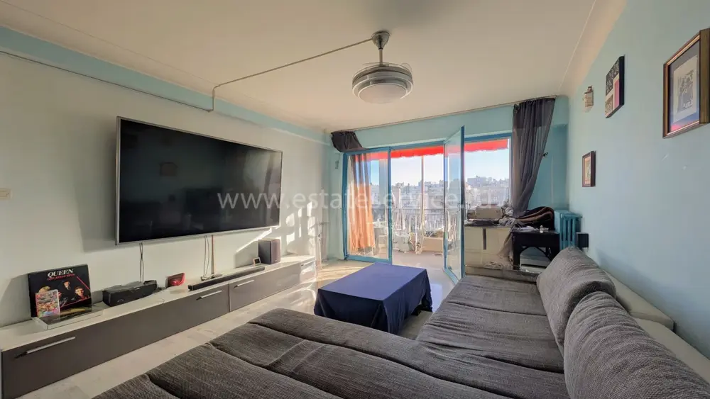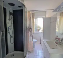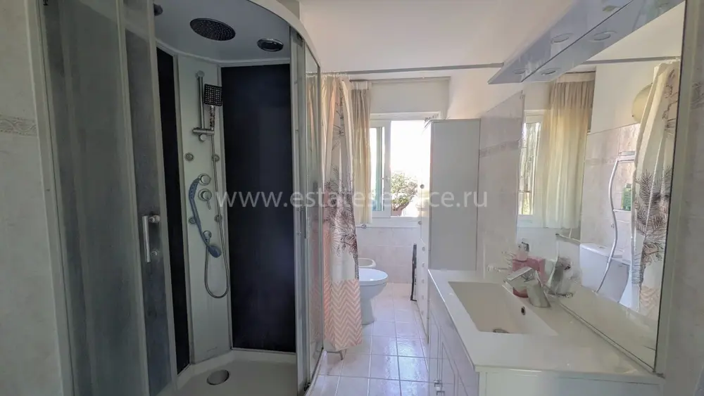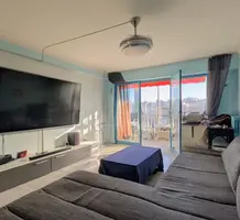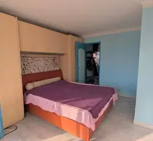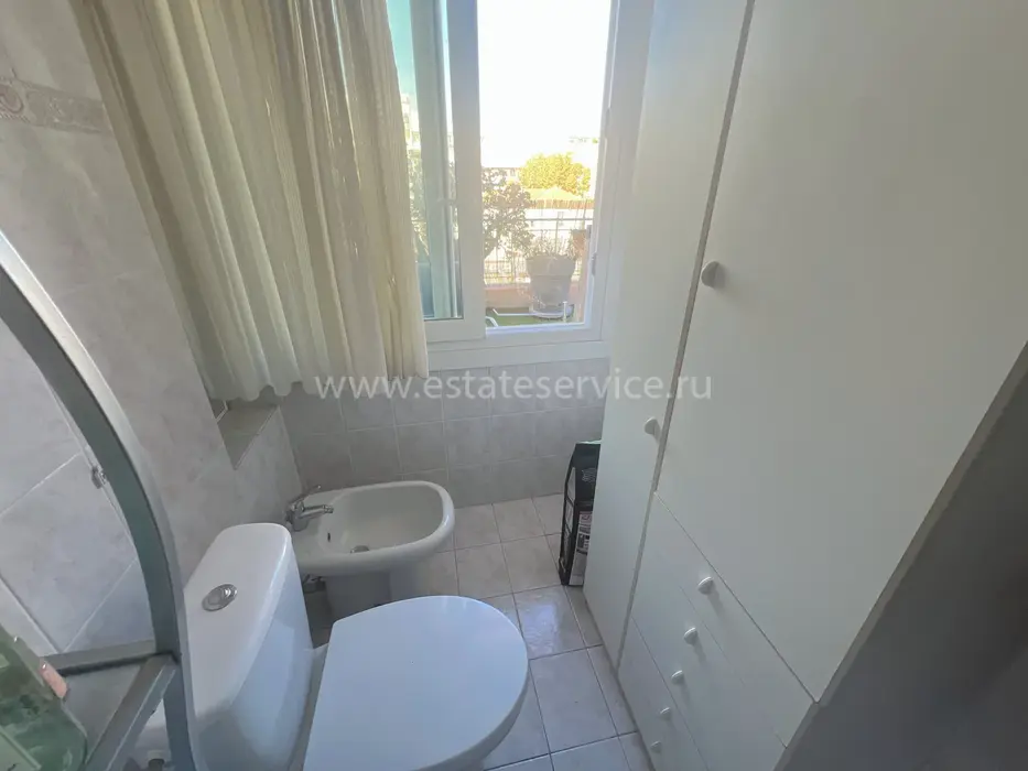 Квартира на верхнем (шестом) этаже здания с лифтом в трёх минутах от моря. Общая площадь 95 m² (жилая 59.9 m²) - прихожая 14.8 m² с примыкающей кухней выходят на большую террасу 23 m², гостиная 20.5 m² и большая спальня 15.8 m² с общей верандой 12.9 m² - можно оборудовать вторую спальню, душевая 7.3 m² с туалетом. Состояние среднее, можно купить крытый гараж. Коммунальные платежи 190 €, годовой налог 1.150 €.