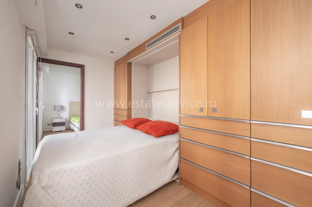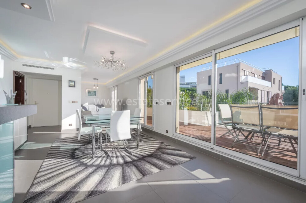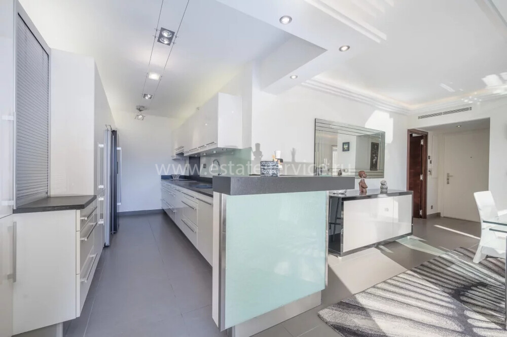 Квартира на верхнем (4-м) этаже современной (2007 года) резиденции с видеонаблюдением возле пляжа, магазинов и всех удобств. Общая площадь 100.5 m² (жилая 78.5 m²) - прихожая, двойная гостиная 42 m² (легко оборудовать дополнительную спальню) с примыкающей кухней 7.9 m² выходят на большую террасу 22 m², две спальни 10.2 и 11.1 m², душевая комната и санузел. Отличное состояние, кондиционер, электрические маркизы, включён двойной гараж 25 m². Коммунальные платежи 300 €, годовой налог 1.314 €.