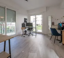 Просторные апартаменты (бывший офис) на втором этаже резиденции в нескольких шагах от пляжа. Общая площадь 80.8 m² (жилая 63.3 m²) - прихожая 18.8 m², гостиная 12.9 m², полу-открытая кухня 3 m², две спальни 8.6 и 18.5 m², санузел и шикарная терраса 17.5 m² по периметру квартиры. Требуется перепланировка (кухню переоборудовать в душевую), хороший потенциал! Фото 3D-визуализации представлены для наглядности. Коммунальные платежи 168 €, годовой налог 1.000 €.
