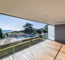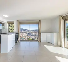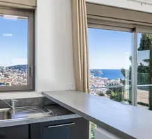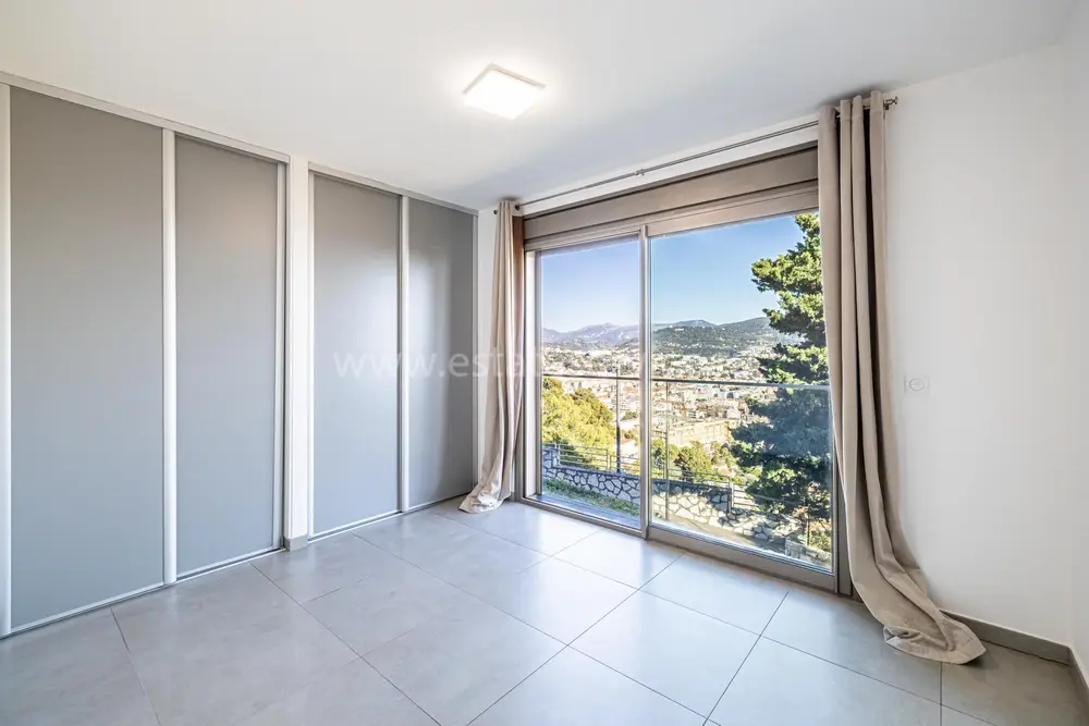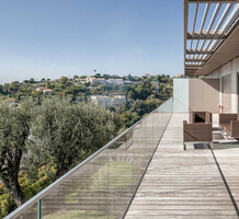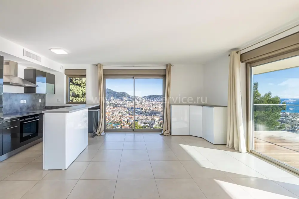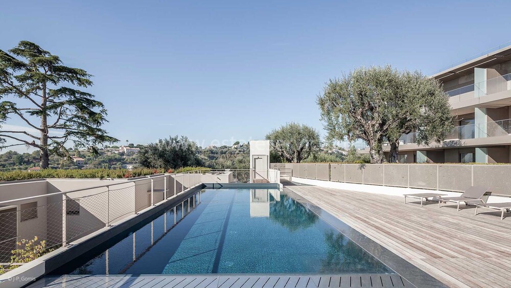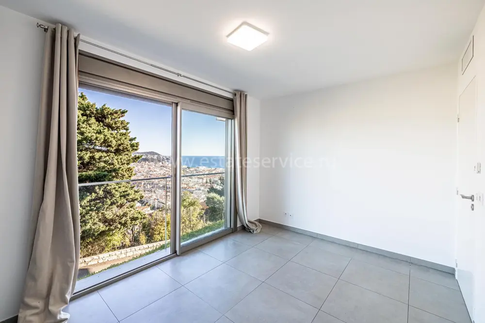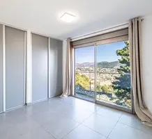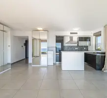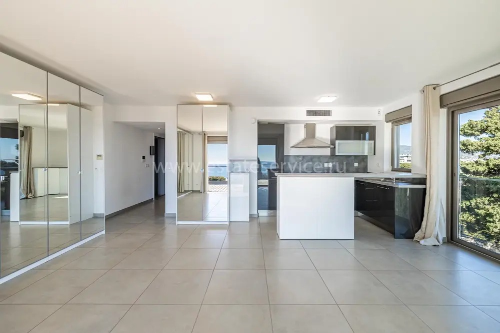 Панорамная квартира на втором (2/4) этаже безопасной резиденции (2013 года) из 21 апартамента с парком, бассейном и площадкой для игры в петанк. Общая площадь 86.3 m² (жилая 67.3 m²) - прихожая, просторная гостиная 28 m² с открытой кухней и шикарной террасой 19 m², две спальни 9 и 11.6 m², ванная комната с окном и отдельный туалет. Отличное состояние, приятный вид на море, зелень и окрестности, можно приобрести одно-два парковочных места, школа, автобус и удобства рядом. Коммунальные платежи 500 €, годовой налог 2.200 €.