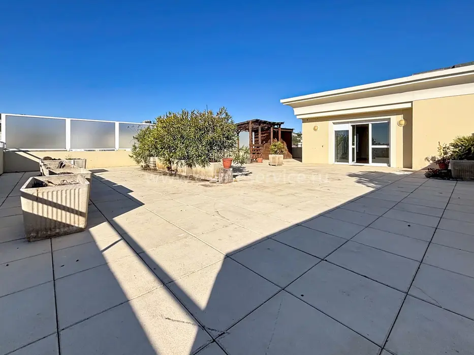 Светлая и просторная квартира на верхнем (10-м) этаже современного здания (2007 года постройки) с лифтом. Общая площадь 207 m² (жилая 86 m²) - прихожая 6 m², двойная гостиная 32 m² с примыкающей кухней 11 m² и выходом на функциональную террасу 120 m², две спальни 12 и 15 m², ванная комната и отдельный санузел. Потребуется обновление, можно оборудовать третью спальню, купить парковочное место в гараже - 30.000 €. Коммунальные платежи 369 €, годовой налог 2.616 €.