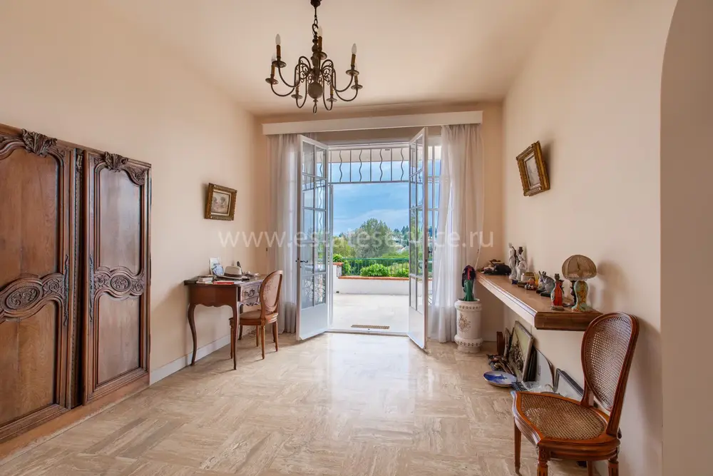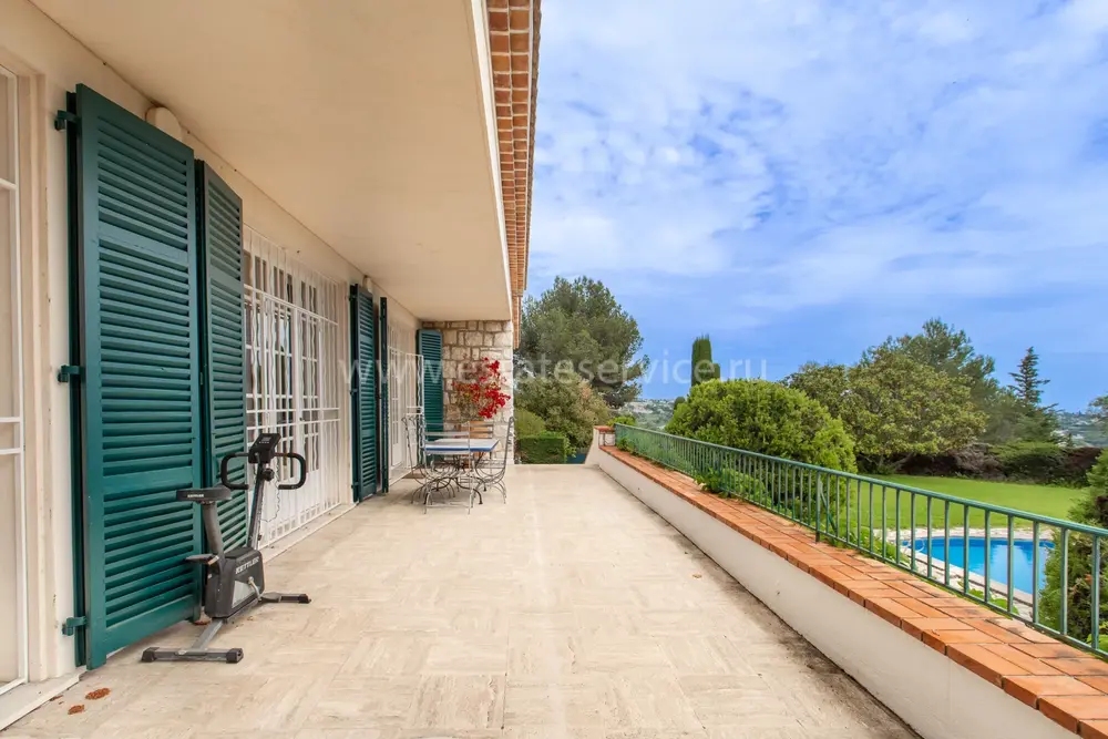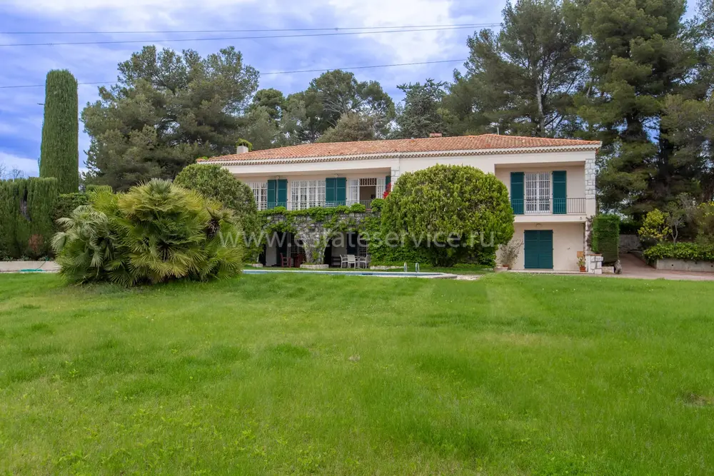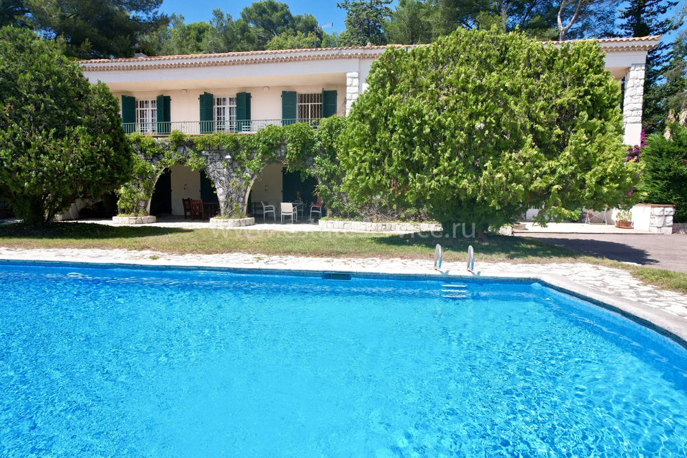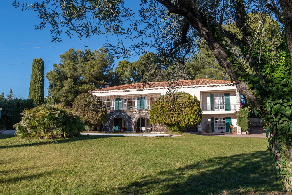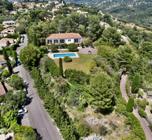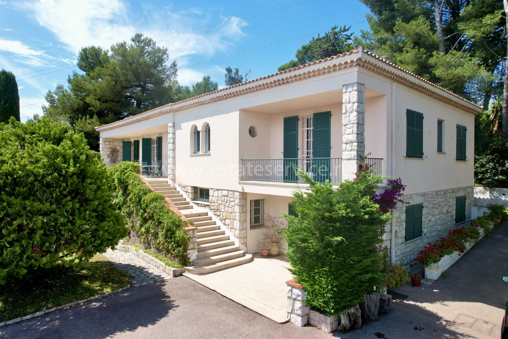 Вилла с тихим расположением недалеко от Château de La Tour и менее чем в 15 минутах от Английской набережной, сектор Collines / Bellet. Общая площадь дома 350 m² (жилая 338 m²), на ровном участке 6.541 m² много зелени, площадка для барбекю, свой прудик с рыбой, сад с фруктовыми деревьями и огородом, двойной гараж, частная подъездная дорога. На основном уровне (высота потолков 3.2 метра) разместились прихожая, большая гостиная 49.8 m² с камином и выходом на широкую террасу 43 m² - вид на зелень, бассейн и море, отдельная кухня 15.5 m² с затененной беседкой, главная спальня 37 m² с ванной комнатой и гардеробной, ещё две спальни по 15 m², душевая и два отдельных туалета. На уровне сада (отдельный доступ + внутренняя лестница) просторная гостиная 53.8 m² с барной стойкой и крытой террасой выходящей к бассейну, отдельная кухня 10.6 m², три спальни 14, 16 и 20.5 m², ванная комната, отдельные санузлы и две кладовые. Годовой налог 6.162 €.