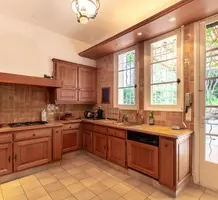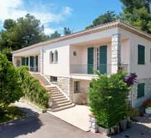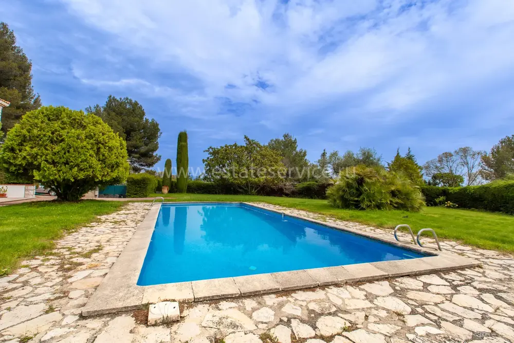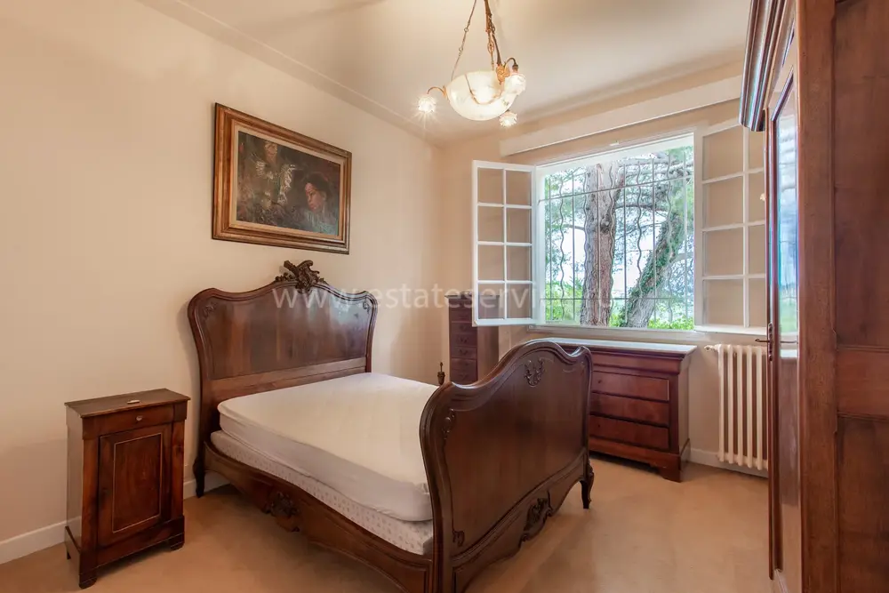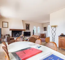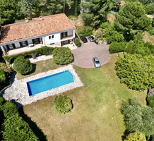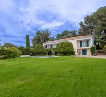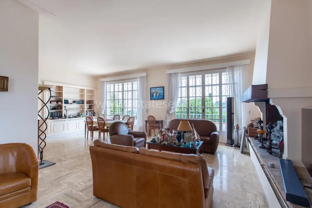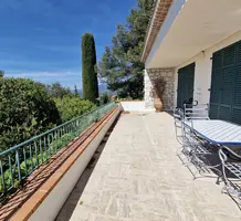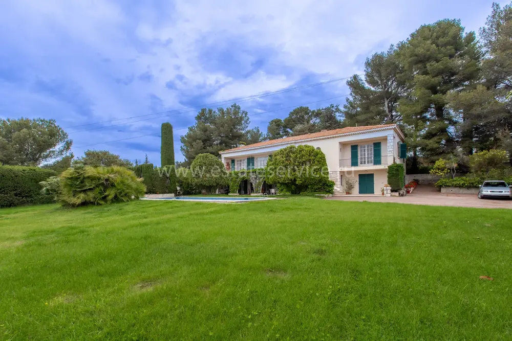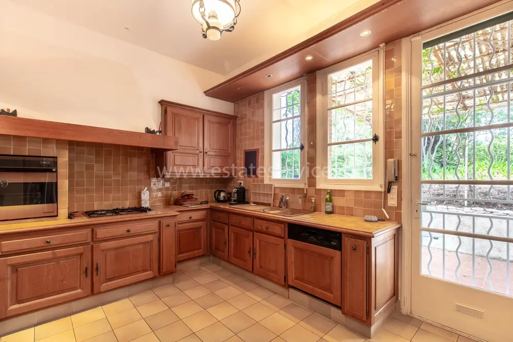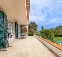 Вилла с тихим расположением недалеко от Château de La Tour и менее чем в 15 минутах от Английской набережной, сектор Collines / Bellet. Общая площадь дома 350 m² (жилая 338 m²), на ровном участке 6.541 m² много зелени, площадка для барбекю, свой прудик с рыбой, сад с фруктовыми деревьями и огородом, двойной гараж, частная подъездная дорога. На основном уровне (высота потолков 3.2 метра) разместились прихожая, большая гостиная 49.8 m² с камином и выходом на широкую террасу 43 m² - вид на зелень, бассейн и море, отдельная кухня 15.5 m² с затененной беседкой, главная спальня 37 m² с ванной комнатой и гардеробной, ещё две спальни по 15 m², душевая и два отдельных туалета. На уровне сада (отдельный доступ + внутренняя лестница) просторная гостиная 53.8 m² с барной стойкой и крытой террасой выходящей к бассейну, отдельная кухня 10.6 m², три спальни 14, 16 и 20.5 m², ванная комната, отдельные санузлы и две кладовые. Годовой налог 6.162 €.