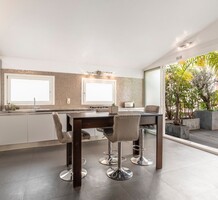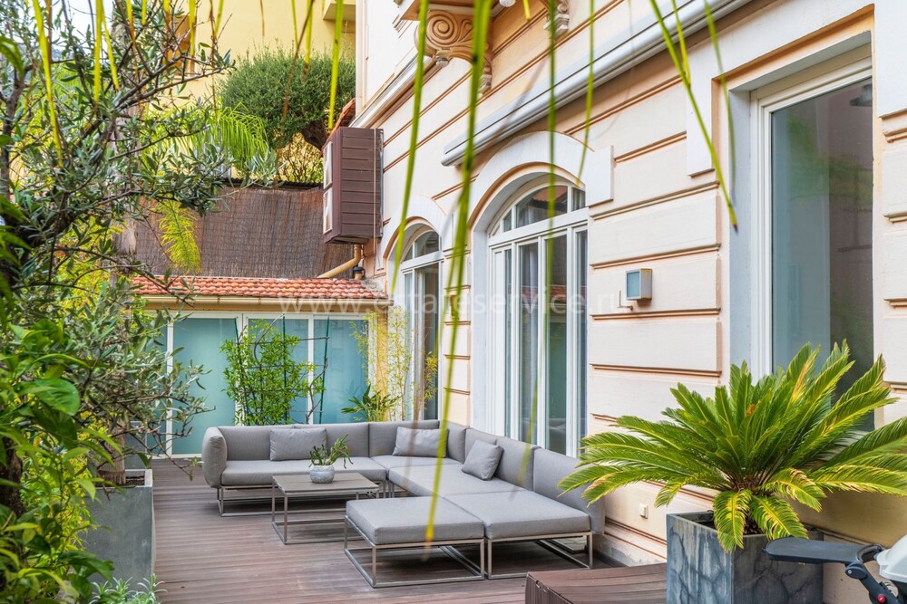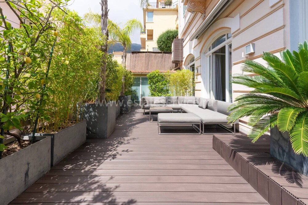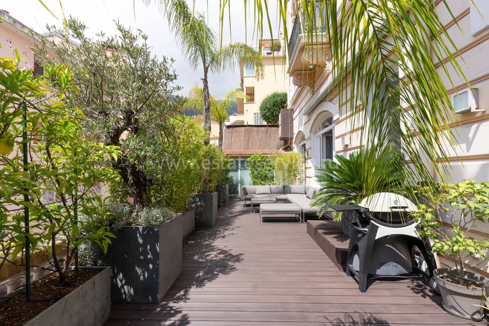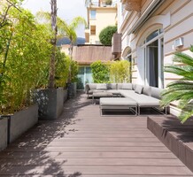 Апартаменты на тихой улочке в двух минутах пешком от Монако и 7-ми минутах ходьбы от Казино Монте-Карло. Жилая площадь 231 m² - просторная гостиная с кухней, открытым кабинетом/библиотекой и выходом на террасу 50 m², две спальни, одна с открытой душевой, вторая с душевой комнатой/туалетом и гардеробной. Здание Belle Epoque с отдельным входом, высота потолков 4.3 м, подогрев полов, реверсивный кондиционер, отдельные (не зависят от кондоминиума) счетчики воды, электричества и газа. Легко переделать в изысканный выставочный зал или частную художественную галерею, включён частный гараж с отдельным въездом. Коммунальные платежи 272 €.