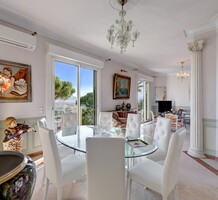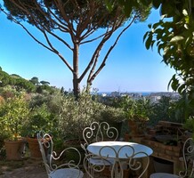 Атмосферная вилла недалеко от школы, магазинов, природного парка Croix des Gardes и в нескольких минутах от центра Канн и пляжа. Общая площадь 263 m² (жилая 195 m² + мансарда 68 m²), на участке 740 m² разбит благоустроенный сад, есть паркинг, место под бассейн. На основном уровне - прихожая, элегантная двойная гостиная с выходом на террасу, две спальни и кабинет, на уровне сада - уютная гостиная с камином, отдельная кухня и ещё две спальни. Хорошее состояние - фасад отремонтирован в 2024 году, панорамный вид на море и горы Эстерель из каждой комнаты.