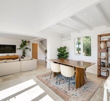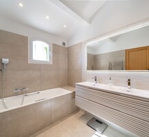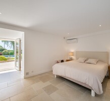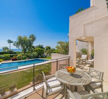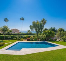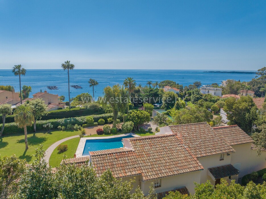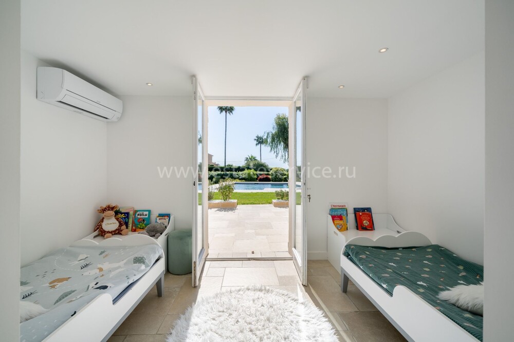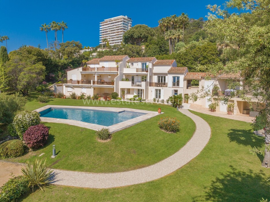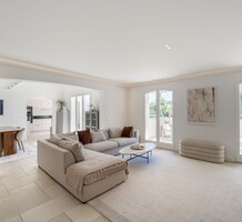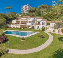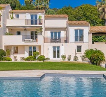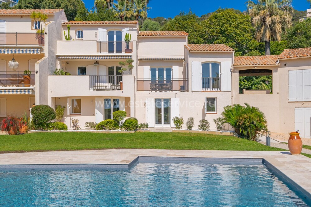 Смежный дом в закрытом поместье (всего из 4 вилл) с парком и бассейном в 150-ти метрах от моря. Общая площадь 264 m² (жилая 173 m²) - светлая и просторная гостиная с примыкающей кухней и выходом на террасу, на уровне сада разместились три спальни (одна с душевой) с общей затененной террасой, наверху - главная спальня 25 m² с ванной комнатой, гардеробной и собственной террасой Отличное состояние, есть также прачечная и закрытый гараж 25 m², всё пешком. Коммунальные платежи 700 €.
