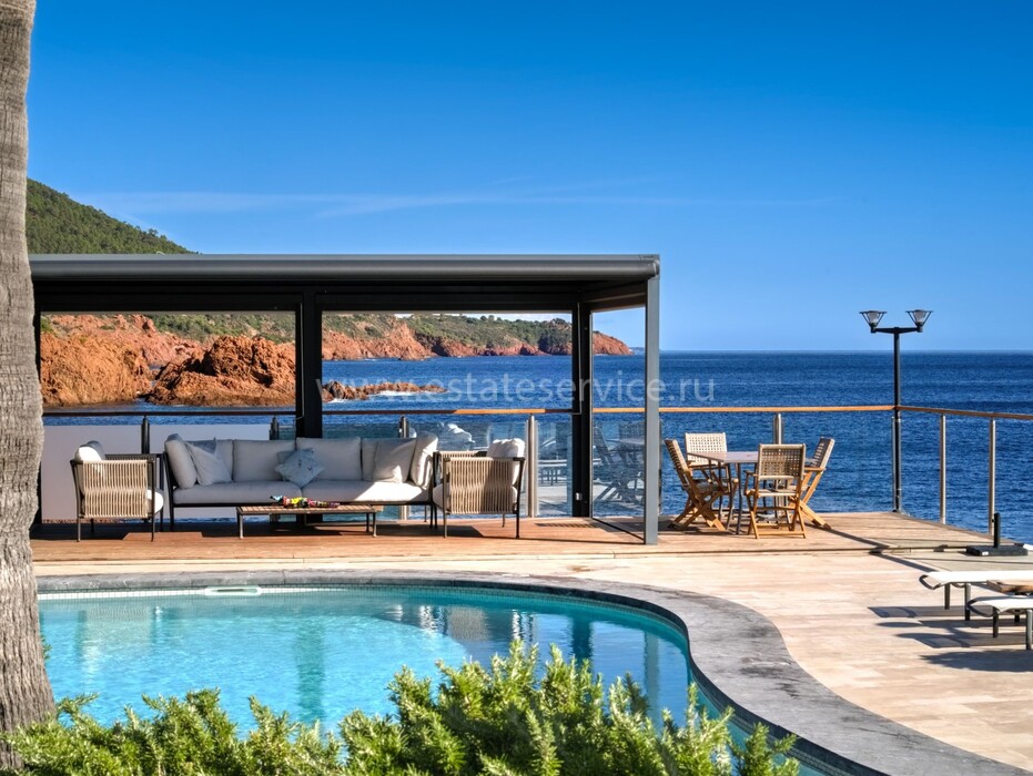 Ухоженная вилла с прямым выходом к морю в закрытом безопасном домене в 19-ти километрах от Канн. Жилая площадь 224 m², на двух уровнях разместились светлая и просторная гостиная с примыкающей кухней, три спальни-люкс, две ванные комнаты, душевая и панорамные террасы. Отличное состояние, на участке 1.000 m² ландшафтный сад, интегрированный в скалы Эстерель, зона отдыха с бассейном-инфинити и джакузи, четыре парковочных места. Редкое предложение!