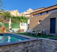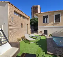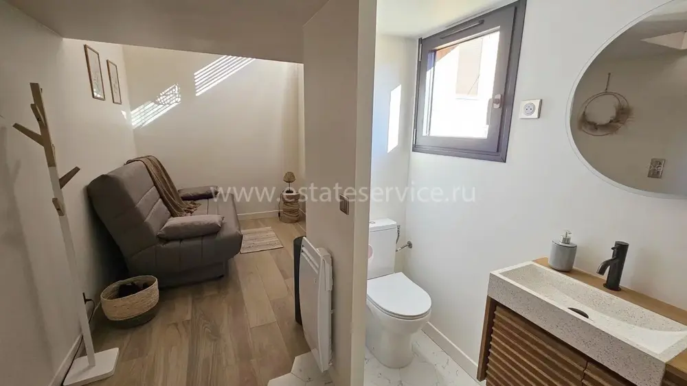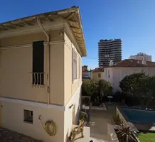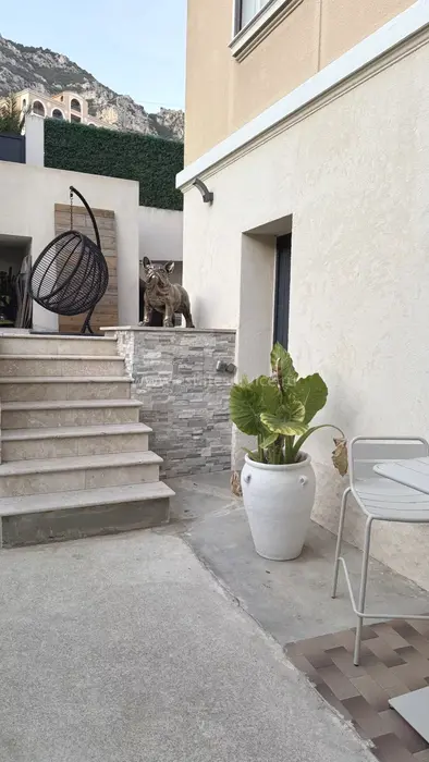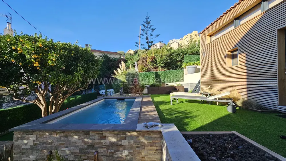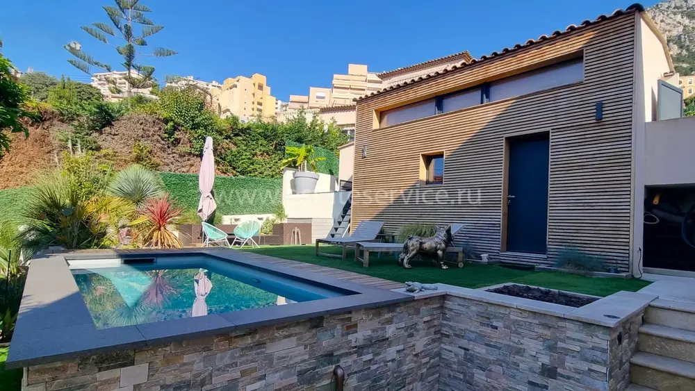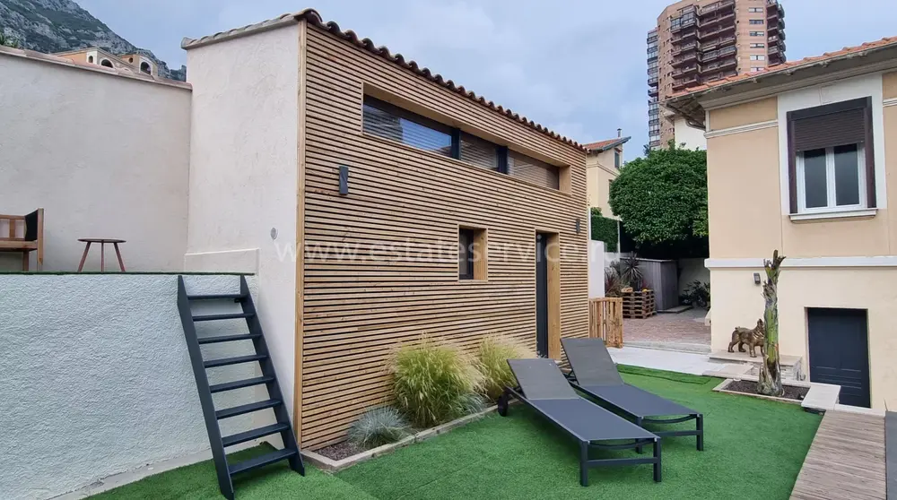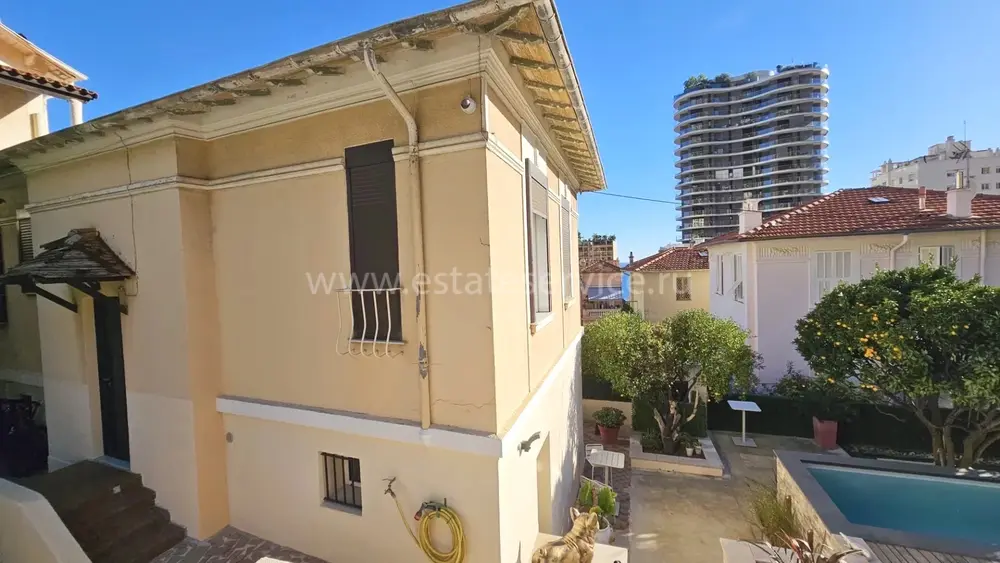 Аккуратный особняк в 2-х минутах от границы с Княжеством. Общая площадь 115 m² + большой гараж на две машины (прямой доступ через частные ворота), на участке 370 m² разбит ухоженный сад, летняя кухня с барбекю, бассейн и стильный гостевой дуплекс. В главном доме 88.7 m² на двух уровнях разместились - прихожая, кабинет/прачечная, гостиная, большая современная кухня, три спальни, главная с душевой и гардеробной, ванная комната и отдельный туалет. Отличное состояние, быстрый и безопасный пешеходный доступ в Монако. Годовой налог 1.592 €.