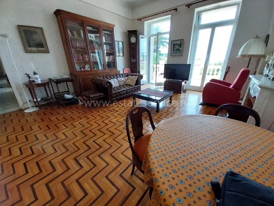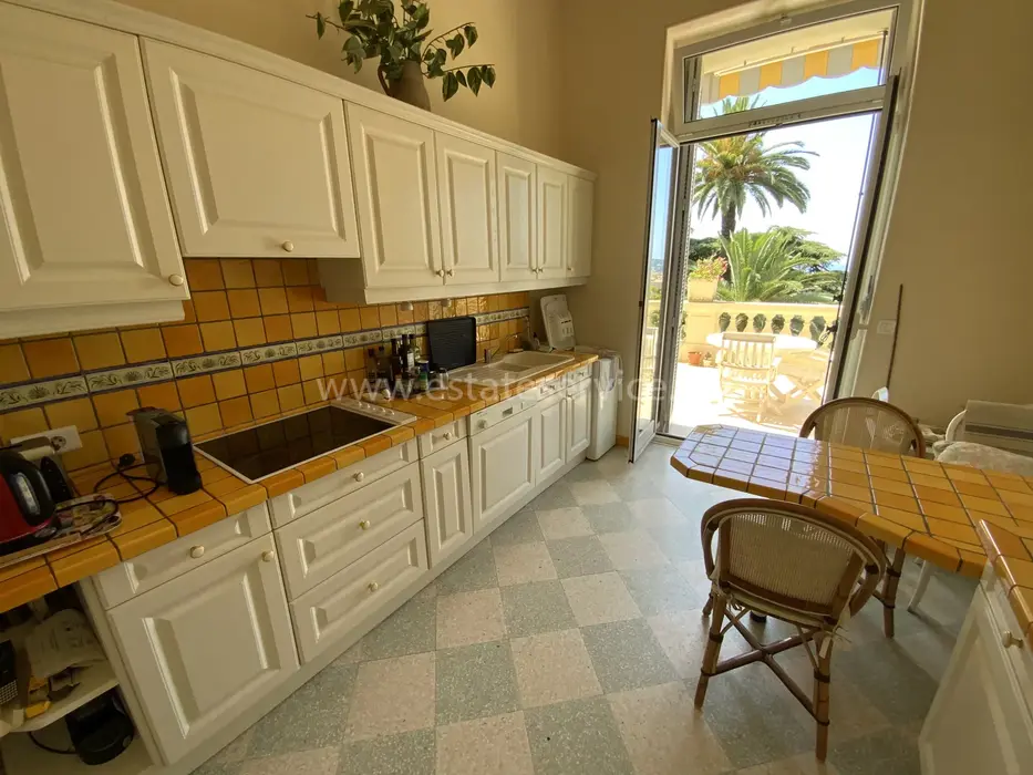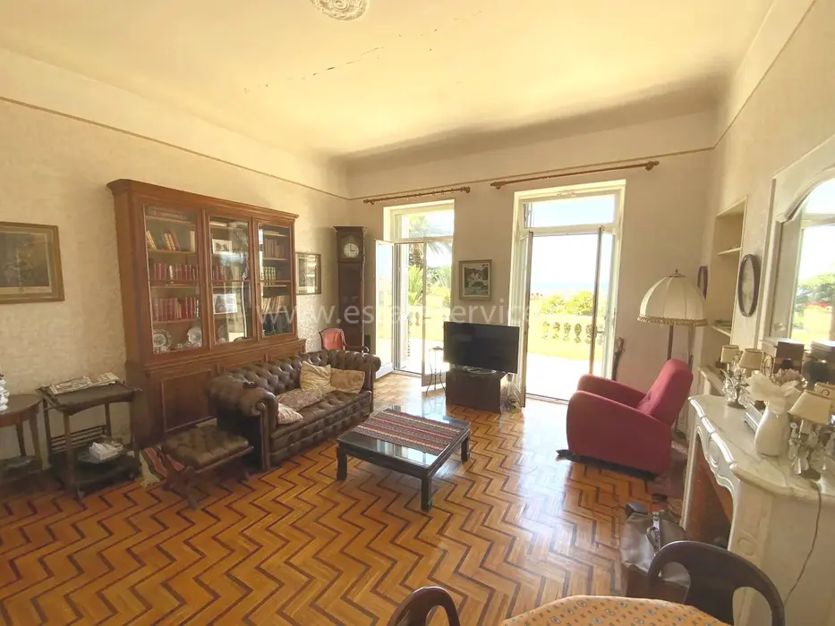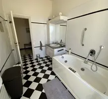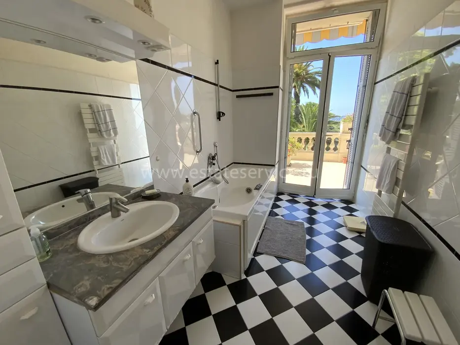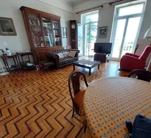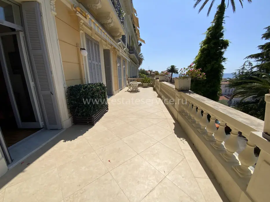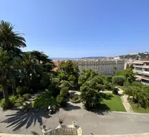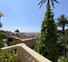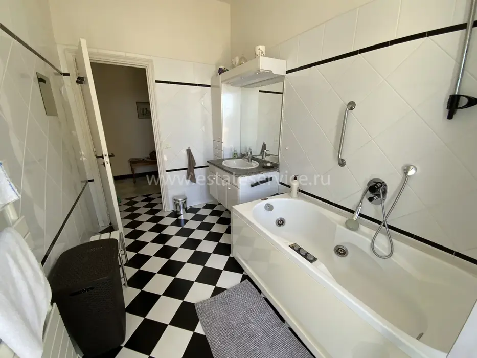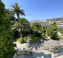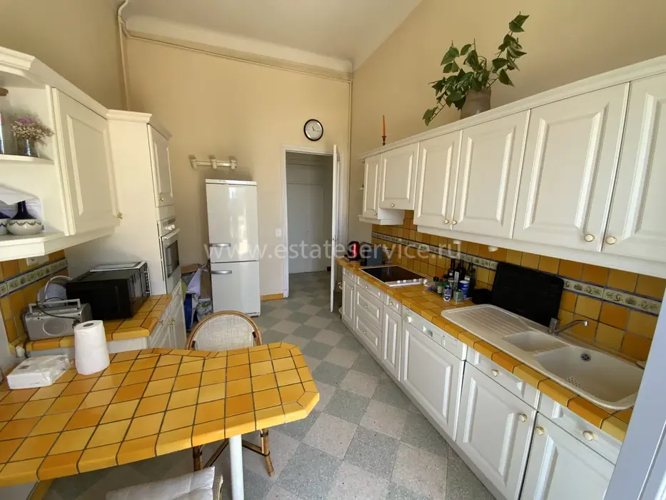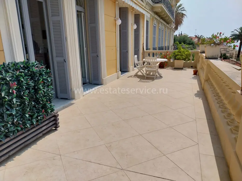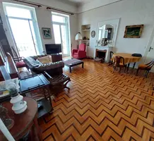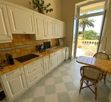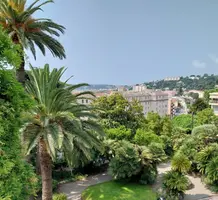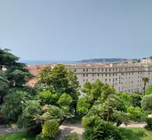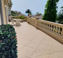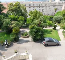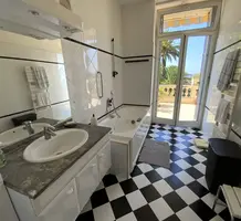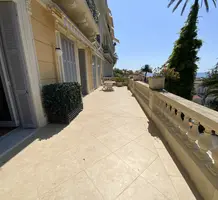 Просторная квартира на втором (2/5) этаже престижной буржуазной резиденции с лифтом и парком в десяти минутах (650 метров) ходьбы от Казино и моря. Общая площадь 217 m² (жилая 133 m²) состоит из двух независимых, но соединенных между собой блоков, в основной части - прихожая 7.9 m², большая гостиная 30.2 m², отдельная кухня 13.4 m², коридор, две спальни 17.7 и 18.7 m² (одна с антресолью), ванная комната, отдельный туалет и панорамная терраса 45 m². В примыкающей части - гостиная 17.4 m², отдельная кухня 10.2 m² (можно переделать в спальню) и ванная комната с туалетом. Есть также подсобка 8.5 m² и большая кладовая 12.9 m². Очень высокие потолки, общая парковка на территории, огромный потенциал. Коммунальные платежи 2.281 € за квартал, годовой налог на имущество 2.374 €.