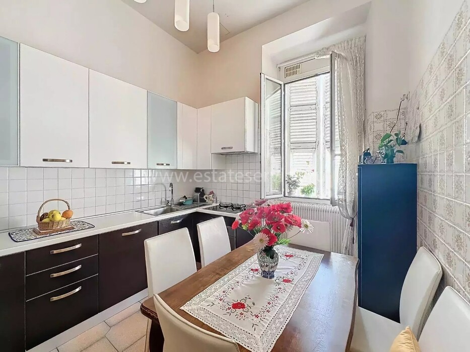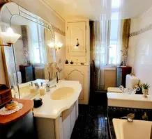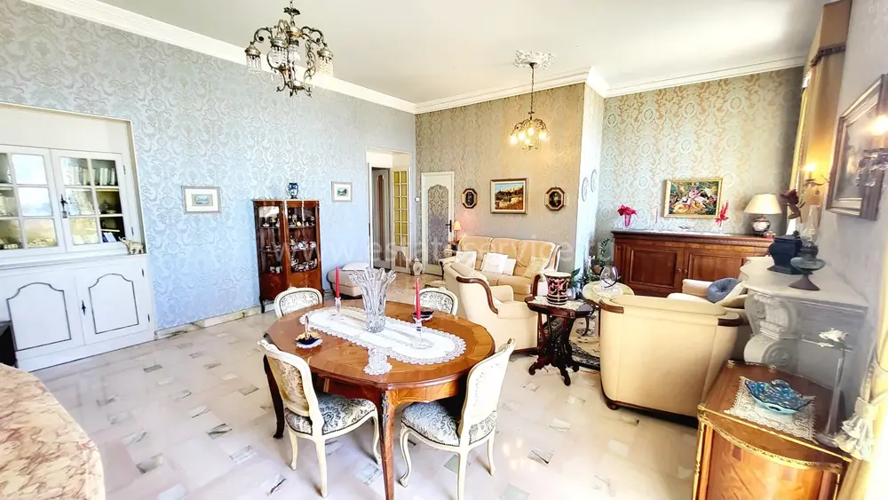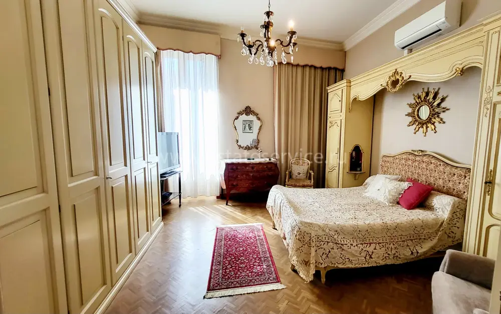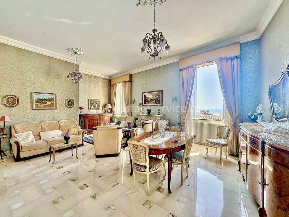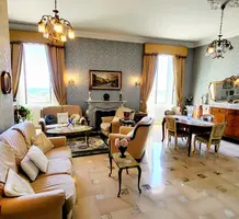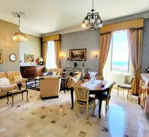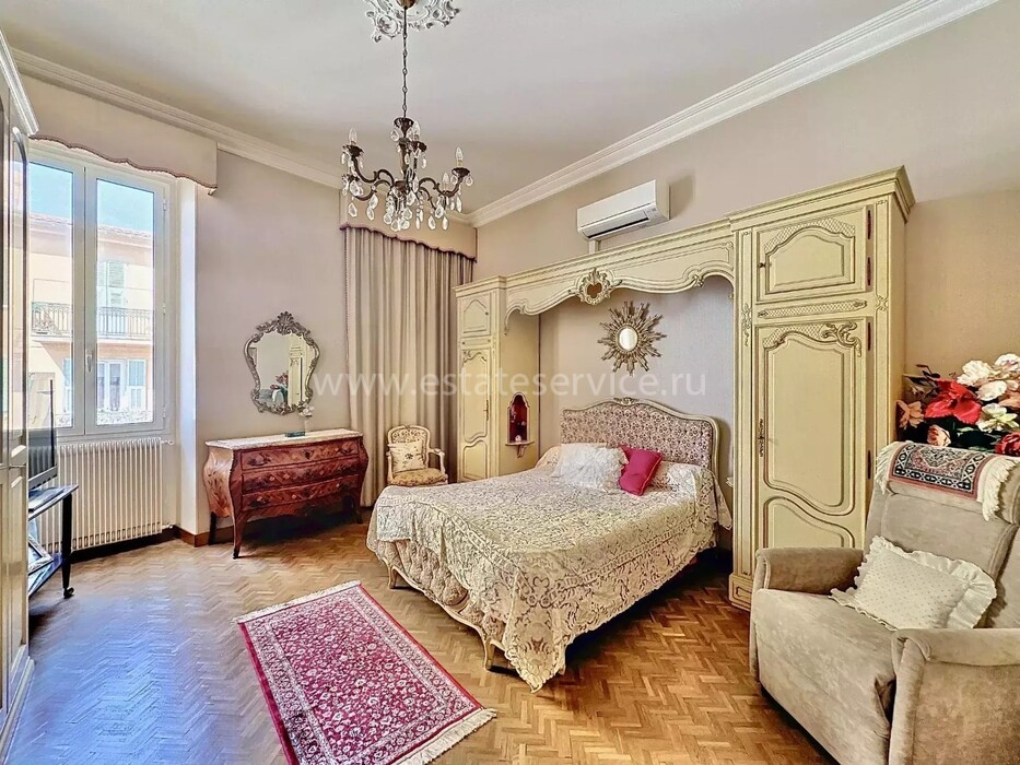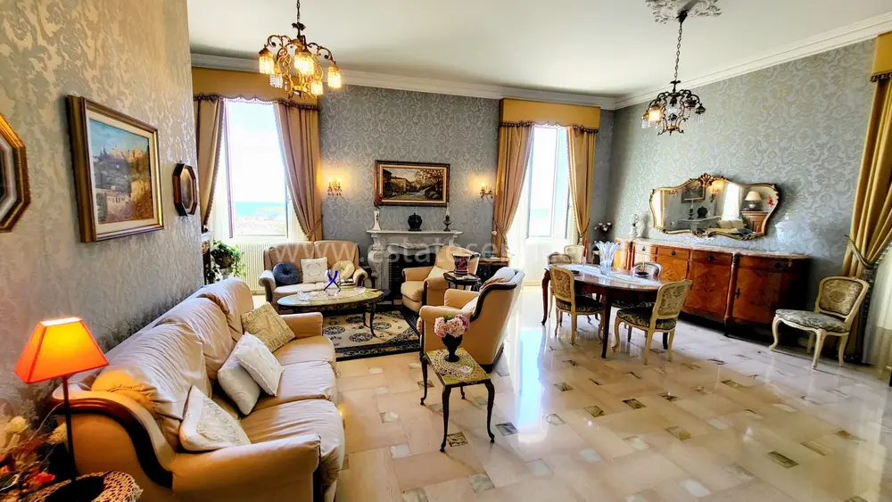 Апартаменты на 3-м (предпоследнем) этаже здания Belle Époque с лифтом в 550-ти метрах от Casino Barrière. Жилая площадь 136 m² - прихожая 12.2 m², светлая гостиная 38 m² с видом на море, отдельная кухня 9.7 m² с балконом, главная спальня 20 m² с встроенными шкафами, ещё две спальни 11 и 14 m² с антресолями, одна из которых выходит на свой балкон, ванная комната с туалетом, отдельный санузел и кладовая. Высокие потолки, возможность разделения на две квартиры. Коммунальные платежи 185 €, годовой налог 2.041 €.