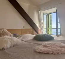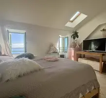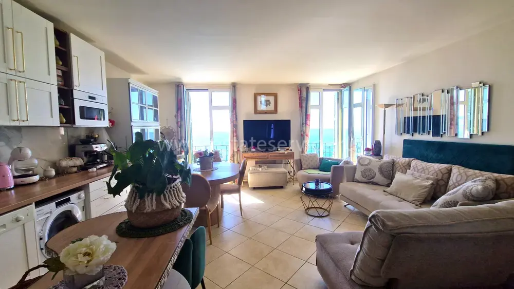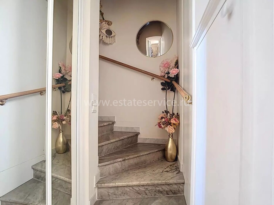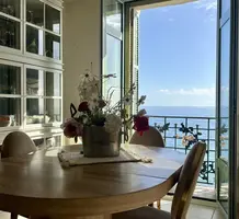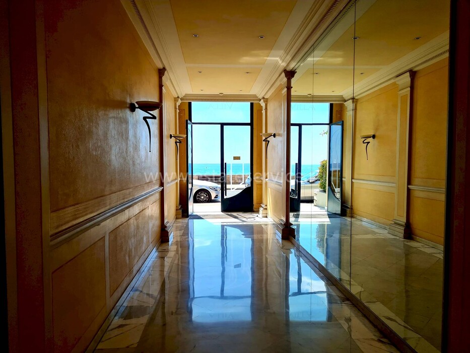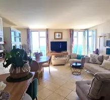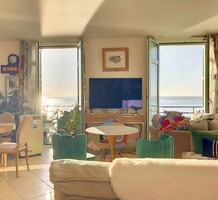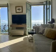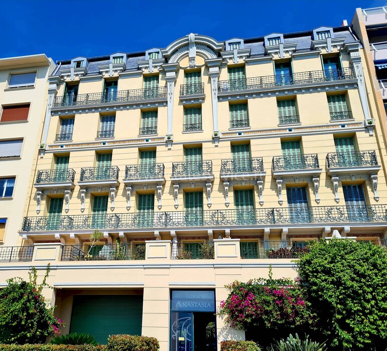 Квартира на верхнем (шестом) этаже элегантной резиденции Belle Epoque с лифтом в километре от Plage du Casino. Жилая площадь 89 m² - прихожая, гостиная-столовая 35 m² с кухней и балконами, отдельный санузел, наверху по мраморной лестнице - две спальни, одна со своей душевой, общая ванная с туалетом и гардеробная. Отличное состояние, всё рядом, есть кладовая. Коммунальные платежи 270 €, годовой налог 2.420 €.