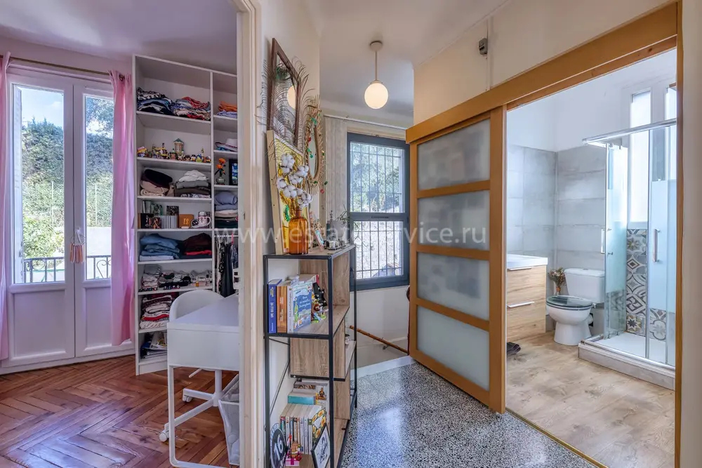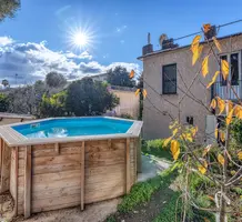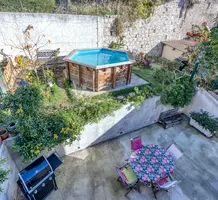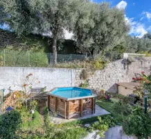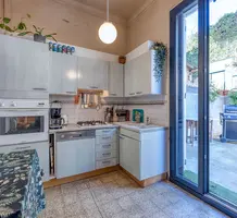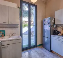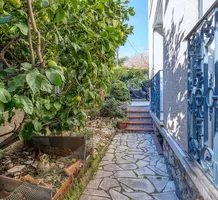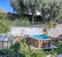 Ухоженная вилла с удобным расположением в квартале Фаброн. Общая площадь дома 138 m² (жилая 85 m² + гараж 15 m² и подвал 38 m²), на участке аккуратный сад с фруктовыми деревьями, огород и небольшой надземный бассейн. На первом этаже прихожая 7 m², гостиная 14 m², столовая 11 m², отдельная кухня 7 m², гостевой туалет, подсобное помещение и гараж. Далее разместились три спальни 9, 13 и 13 m² с балкончиками и общая душевая комната/туалет. Есть также ещё три комнаты, две можно использовать под спальни, кабинет или гардеробные. Дом 1930 года постройки, отремонтирован в 2020 году. Близость магазинов, общественного транспорта и моря. Годовой налог на имущество 1.518 €.