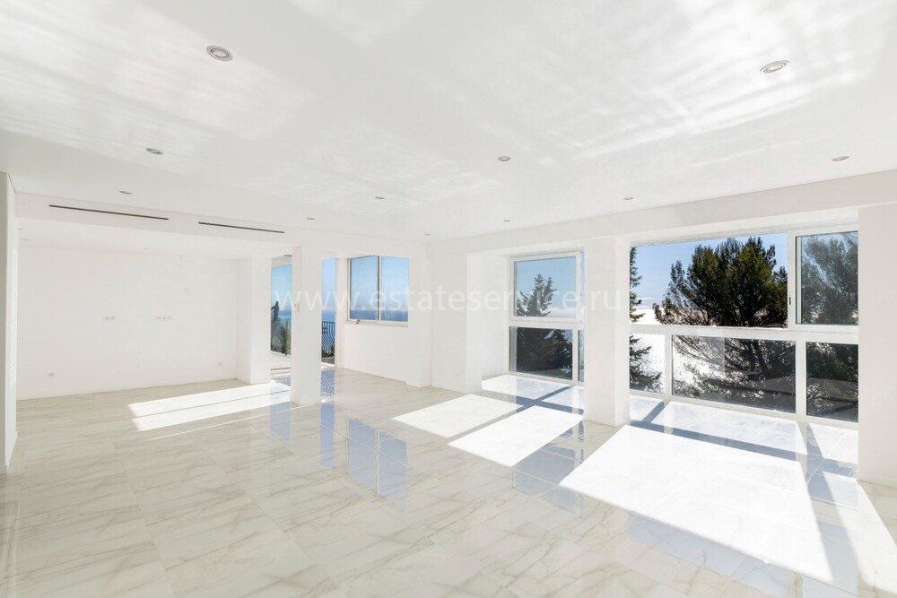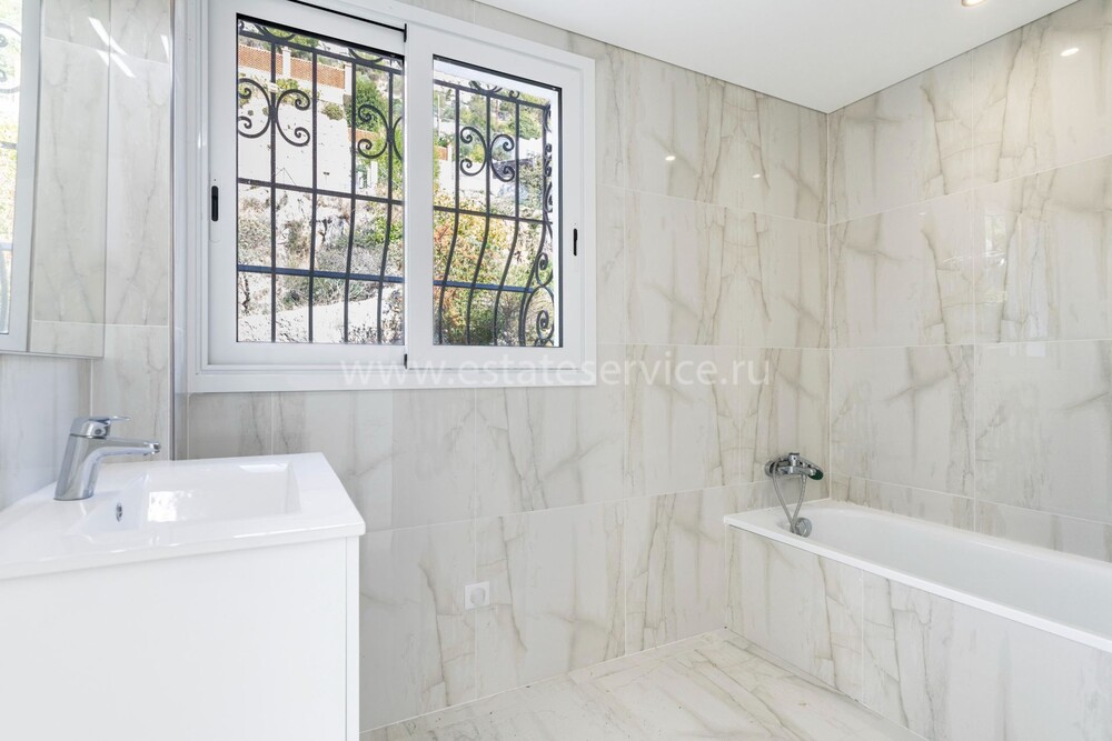 Полностью отремонтированная квартира в закрытом безопасном кондоминиуме из трёх апартаментов. Жилая площадь 127 m² - прихожая, гостиная-столовая 56 m² с открытой кухонной зоной, три спальни, две ванные комнаты, душевая с туалетом и терраса 17 m² с шикарной панорамой на море и Княжество. Качественная отделка, включены два парковочных места. Коммунальные платежи 30 €.