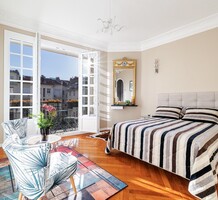 Элегантные апартаменты в престижном здании с лифтом в 650-ти метрах от Английской Набережной и моря. Жилая площадь 130 m² - прихожая, двойная гостиная-столовая с камином и балкончиком, отдельная кухня, три спальни, главная со своей душевой и балконом на тихий внутренний двор, общая душевая комната с туалетом. Высокие потолки, встроенные системы хранения, высококачественная отделка, центральный кондиционер. Коммунальные платежи 350 €.