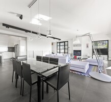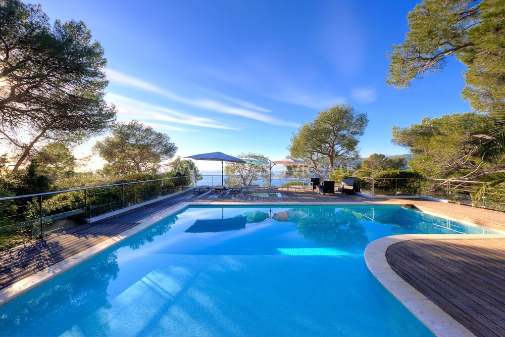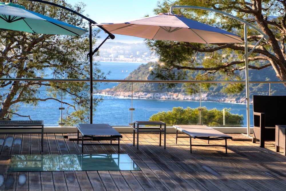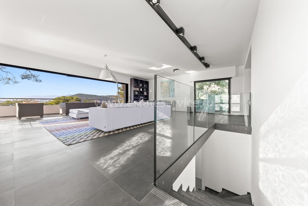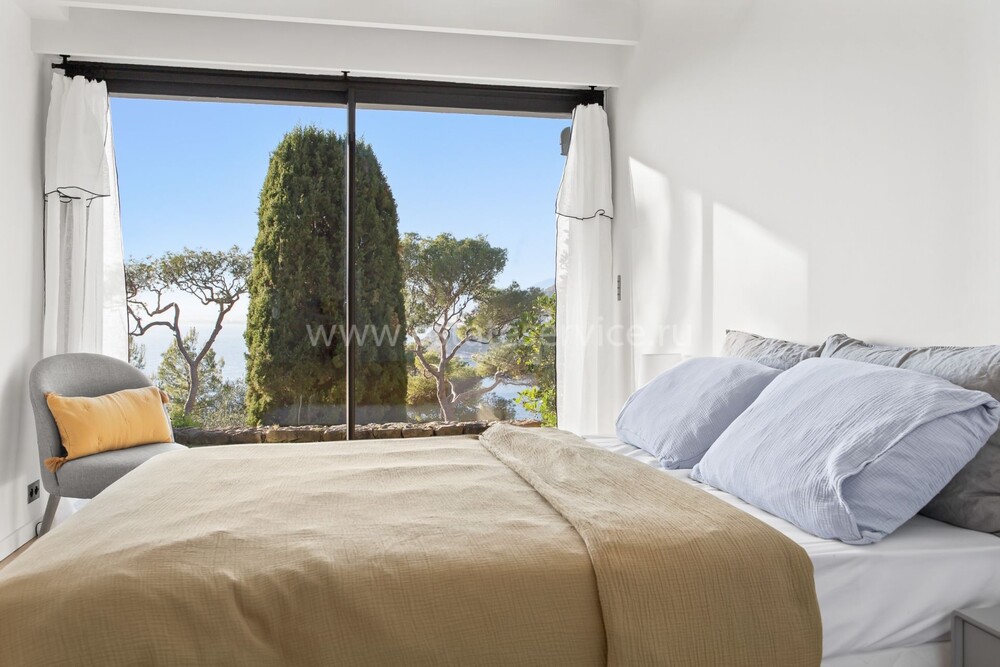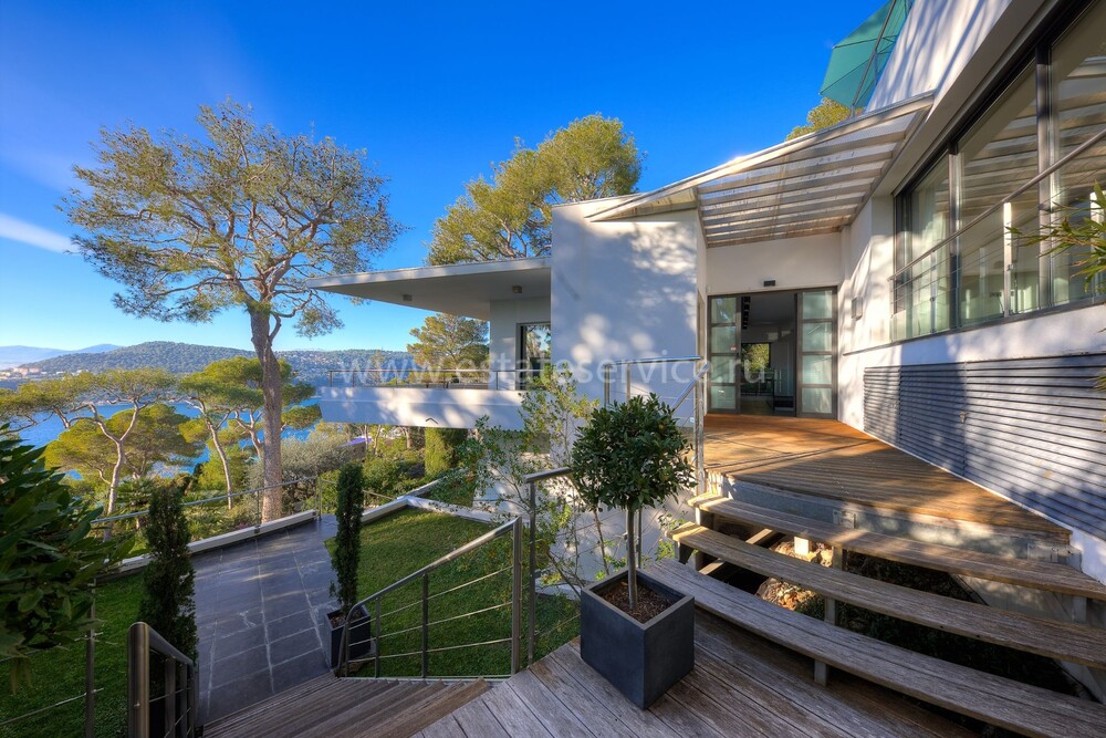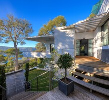 Функциональная вилла с доминирующим расположением на западной стороне Кап-Ферра в пешей доступности от пляжа Пассабл. Жилая площадь 240 m² (возможность расширения до 300 m²), огороженный участок 2.1000 m² с удобным подъездом. На трёх уровнях (соединены лифтом) разместились - просторная гостиная с обеденной зоной, открытой кухней и выходом на террасу, пять спален с ванными/душевыми, подсобные помещения, большой гараж на две машины и терраса на крыше из тикового дерева с бассейном. Можно оборудовать фитнес-зал, домашний кинотеатр или отдельную гостевую студию. Шедевр современной архитектуры в безмятежной обстановке, уникальный потенциал для расширения, редкое предложение!