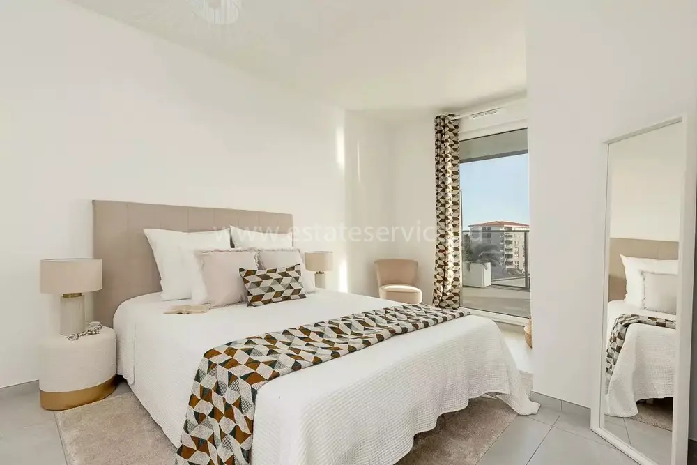 Апартаменты в готовой новостройке в шаговой доступности от школы, пляжа и магазинов. В продаже остались две квартиры на верхнем этаже: с двумя спальнями площадь 63 m² + терраса 18.4 m² - 490.000 €, с тремя спальнями площадь 92 m² + балкон 11.9 m² и терраса 20 m² - 855.000 €. Хорошая отделка, реверсивный кондиционер, можно купить подземный паркинг - 33.000 €, кладовая - 6.000 €.