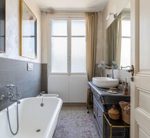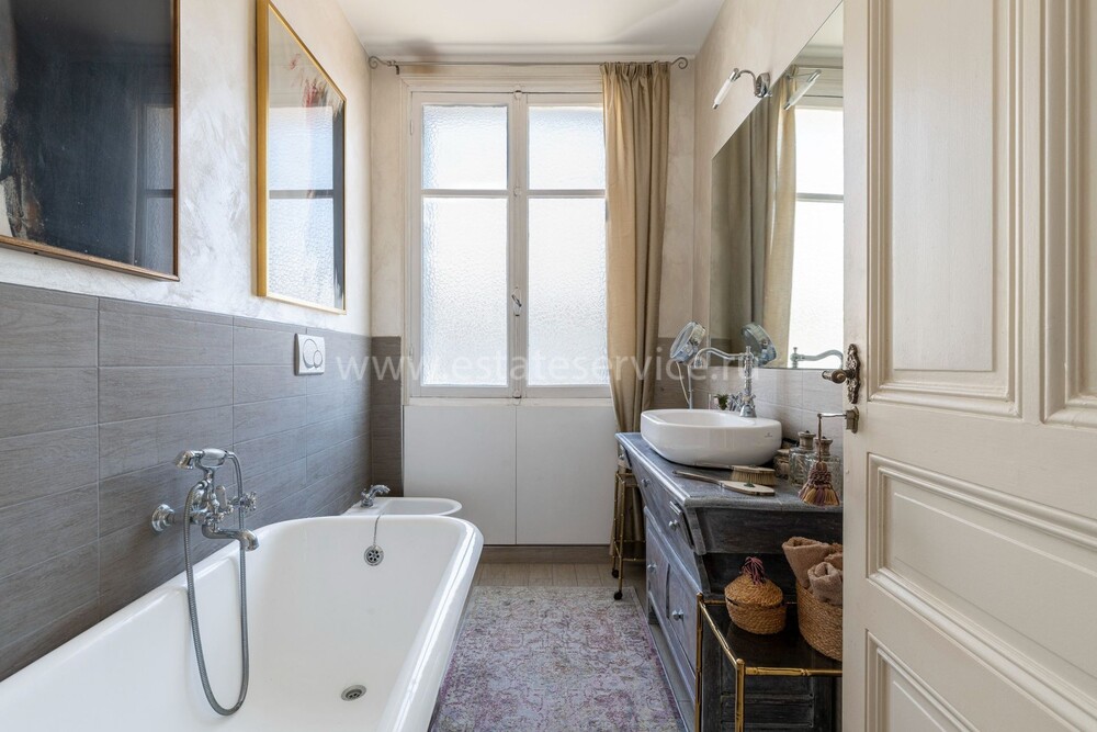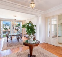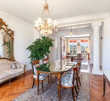 Буржуазная квартира на предпоследнем этаже роскошного дворца с консьержем поблизости от школы и основных удобств. Жилая площадь 149 m² - элегантная гостиная с балкончиком, столовая, отдельная кухня, три спальни, главная с собственной душевой, отдельная ванная комната, вторая душевая и три туалета. Отличное состояние, паркетные полы, высокие потолки с декоративной лепниной, закрытый гараж, кладовая. Коммунальные платежи 300 €.
