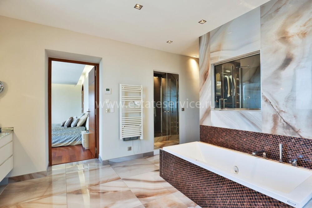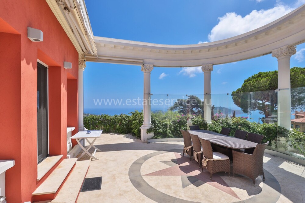 Элегантная вилла с удобным расположением между Княжеством и международным аэропортом Ниццы. Жилая площадь 426 m² + гараж и террасы, земельный участок 1.314 m². На трёх уровнях дом включает десять комнат - прихожая, двойная гостиная, отдельная кухня, шесть спален, главная 29 m² наверху с ванной комнатой 35.5 m² и кабинетом, а также игровая комната, тренажерный зал и гардеробная.