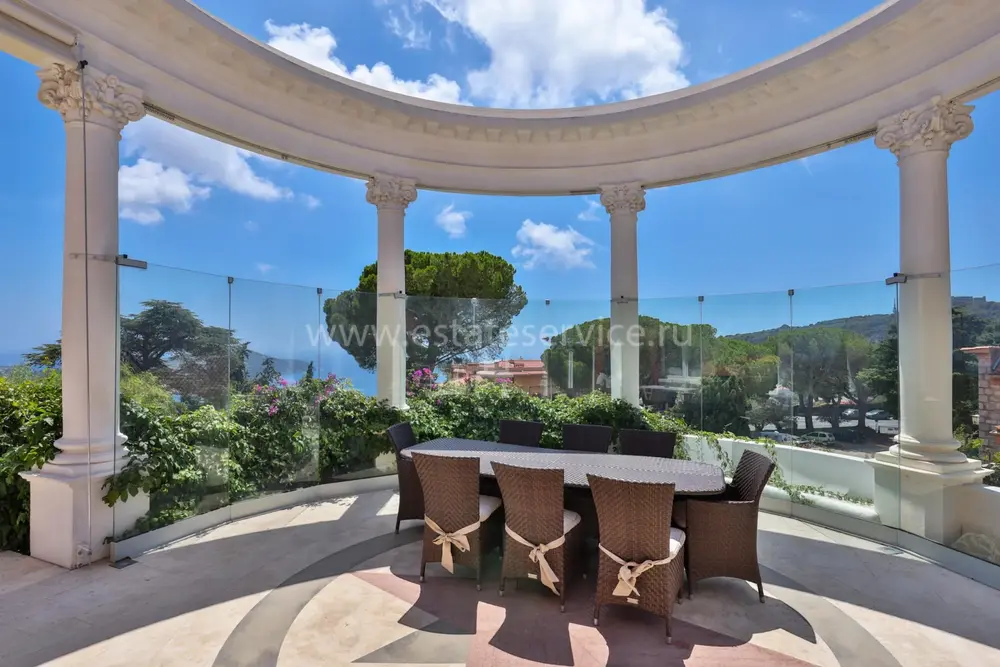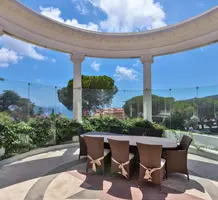 Элегантная вилла с удобным расположением между Княжеством и международным аэропортом Ниццы. Жилая площадь 426 m² + гараж 66.5 m² и террасы, земельный участок 1.370 m². На трёх уровнях дом включает десять комнат - солидная прихожая 44 m², двойная гостиная 59 m², отдельная кухня 19.6 m², шесть спален, главная 29 m² наверху с ванной комнатой и кабинетом 35 m², а также игровая комната, тренажерный зал и гардеробная. Годовой налог 7.357 €.