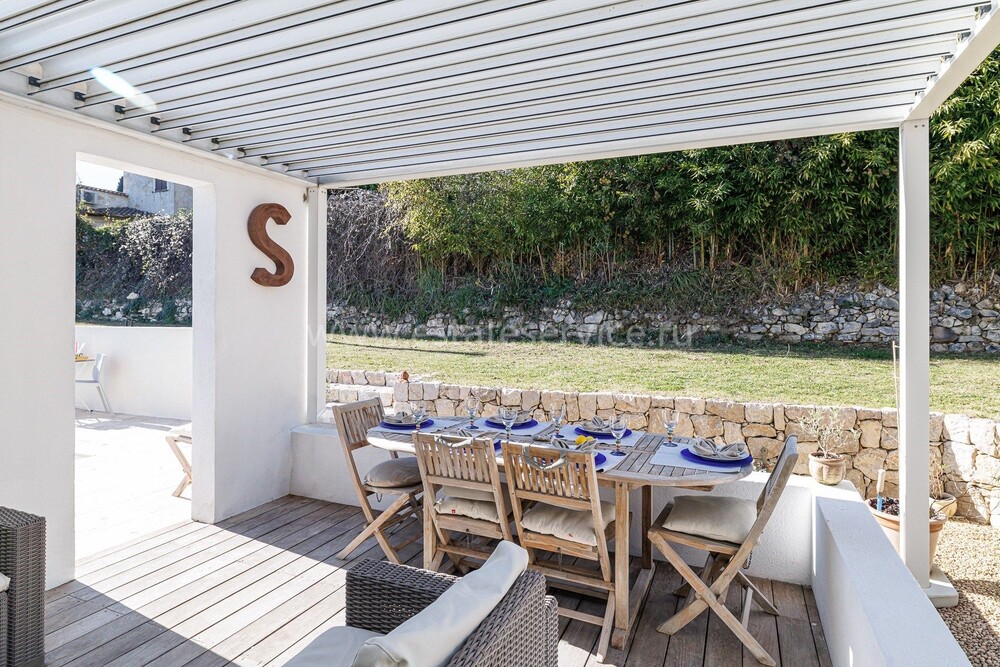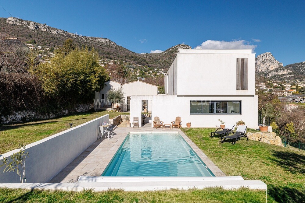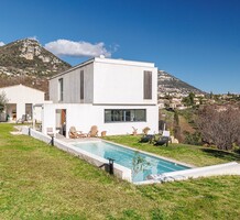 Современный продуманный дом с удобным расположением возле (250 метров) школы и в 15-ти километрах от международного аэропорта Ниццы. Жилая площадь 170 m² + подвал и терраса с биоклиматической перголой, на ровном участке 1.545 m² ландшафтный сад, закрываемый бассейн, большая парковка на шесть автомобилей. На двух уровнях разместились прихожая, светлая гостиная-столовая с выходом на террасу, островная кухня с отдельным входом, три спальни, главная с собственной ванной комнатой, а также отдельная квартира 50 m² (включает спальню, душевую и кабинет) с возможностью добавления кухни - отличный вариант для гостей или сдачи в аренду!