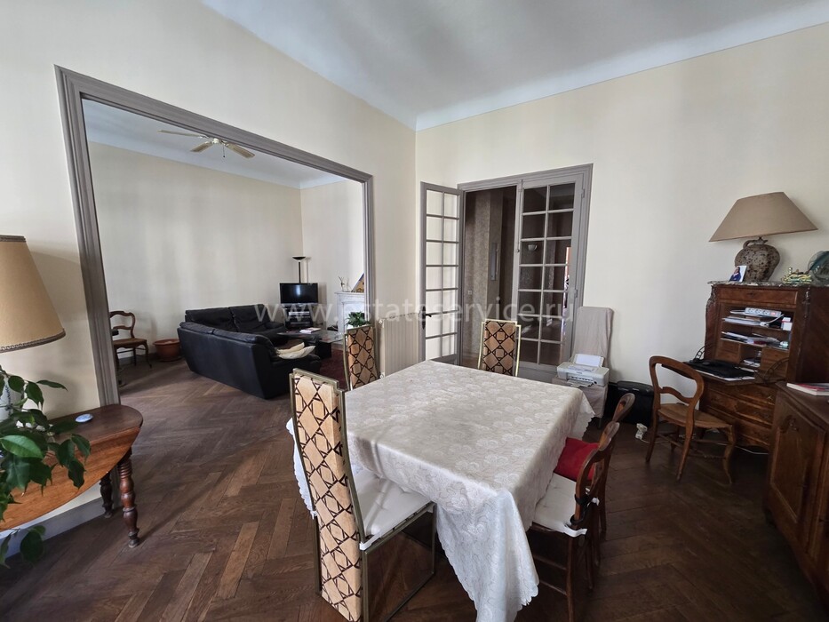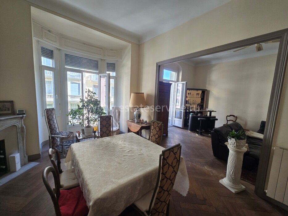 Солидные апартаменты на третьем этаже буржуазного здания с лифтом в самом центре Ментона. Жилая площадь 152 m² + шесть балконов, в квартире - широкая прихожая 20 m² ведущая ко всем комнатам, гостиная 23 m², столовая 18.9 m², отдельная кухня 9 m², четыре большие спальни 14.5, 16, 17 и 21.9 m², ванная комната, душевая и отдельный туалет. Приятный вид на море, высокие потолки, кладовая, хороший потенциал. Коммунальные платежи 217 €, годовой налог 2.560 €.