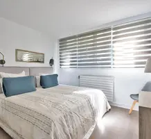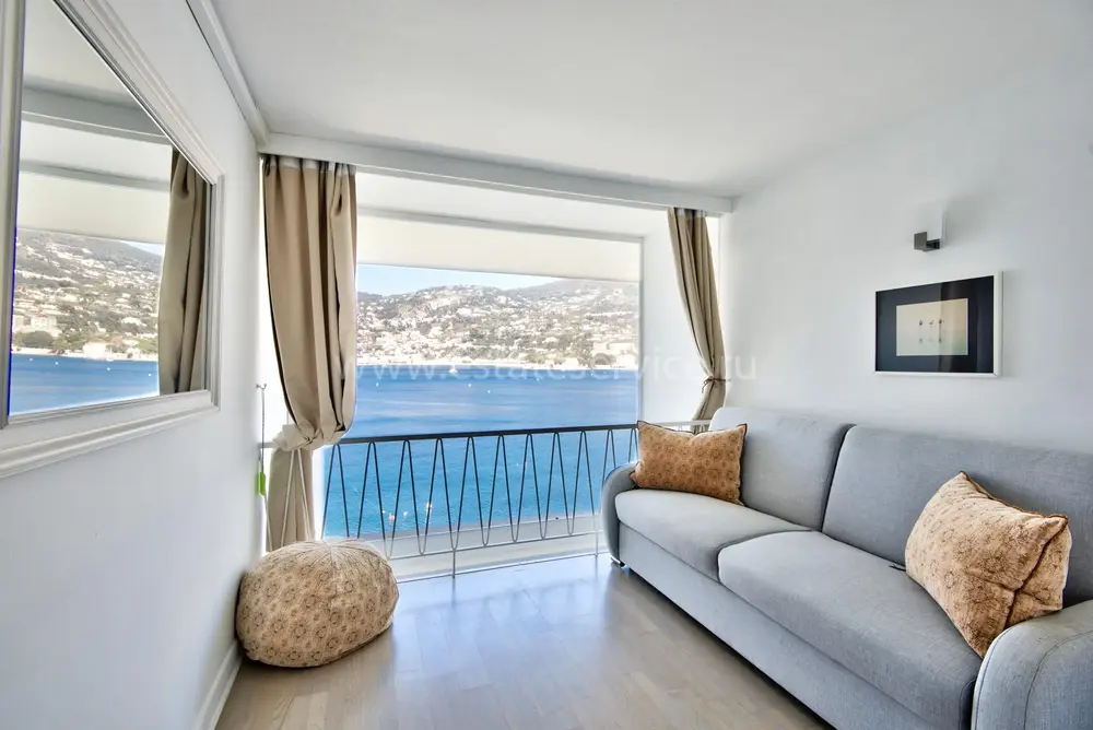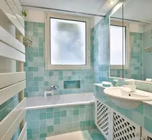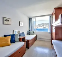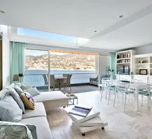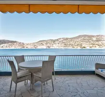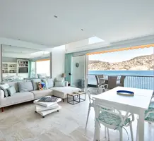 Двухуровневая квартира в стильной резиденции на первой линии в пяти метрах от моря. Общая площадь 101 m² (жилая 90.1 m²) - просторная гостиная-столовая с выходом на террасу 11 m², отдельная кухня и санузел, наверху - три спальни (две с прямым видом на море), общая ванная с ванной + душевой и санузел. Здание с лифтом, отоплением и общей парковкой, всё рядом. Коммунальные услуги 292 €, годовой налог 1.363 €.