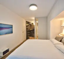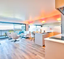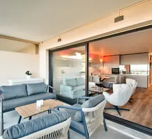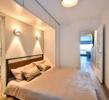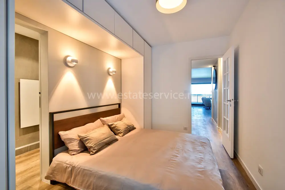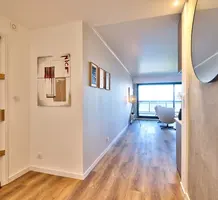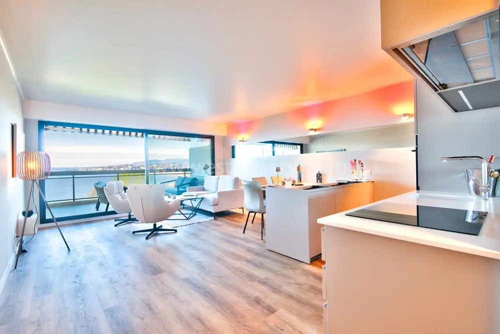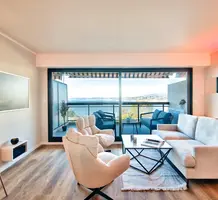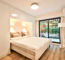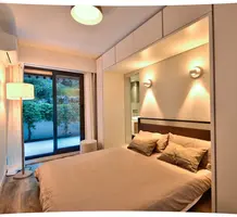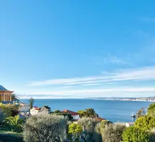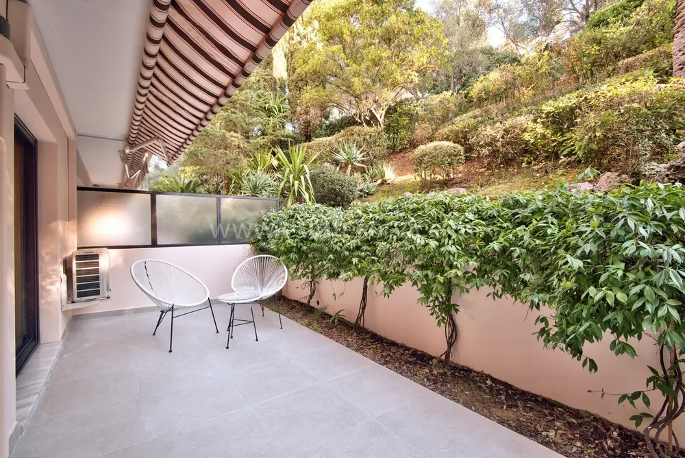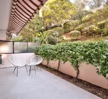 Полностью отремонтированная меблированная квартира в престижной резиденции с парком, бассейном и удобным (пешая доступность) расположением возле моря, порта и международной школы. Общая площадь 101.6 m² (жилая 68.1 m²) - прихожая, гостиная 34 m² с кухней и выходом на террасу 11.7 m² - вид на baie des anges, две спальни 9 и 15.1 m² (одна со своей душевой) выходят на уютную террасу-сад 12.8 m², вторая душевая комната/туалет и отдельный санузел. Отличное состояние, включены парковочное место и кладовая. Коммунальные платежи 398 €, годовой налог 1.734 €.