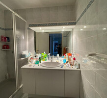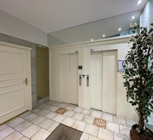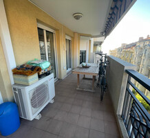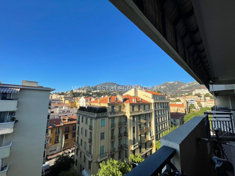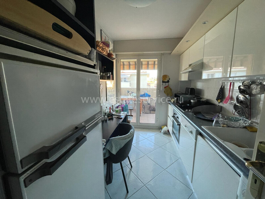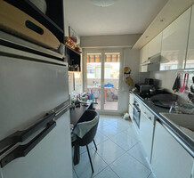 Апартаменты на восьмом (предпоследнем) этаже ухоженного здания с лифтом в центре города. Общая площадь 64 m² (жилая 77 m²) - прихожая, гостиная, отдельная кухня и две спальни выходят на удобную террасу 13 m² с боковым видом на море, ванная комната и туалет. Хорошее состояние, можно купить место на подземном паркинге. Коммунальные платежи 120 €.