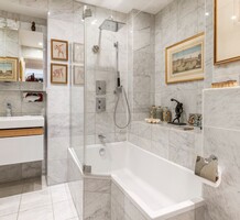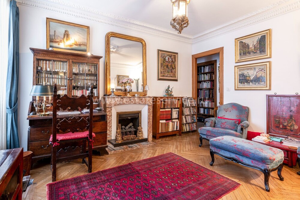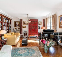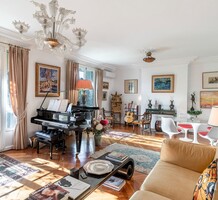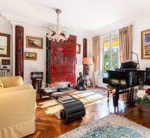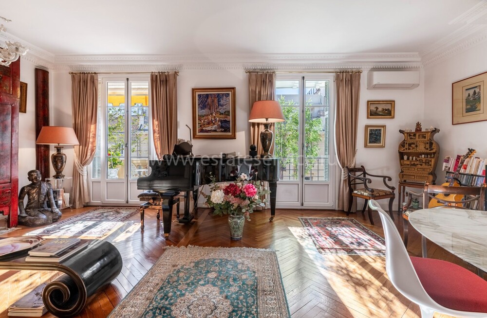 Апартаменты на верхнем этаже элегантного здания Belle Époque с лифтом в самом центре Ниццы. Общая площадь 125 m² (жилая 103 m²) - прихожая, светлая гостиная 35 m² с балконом 9 m², отдельная кухня, две спальни с ванной и душевой комнатами/туалетами, комната отдыха/TV и уютный кабинет с камином. Под крышей есть также две отдельные комнаты - кабинет и спальня 17 m² с душевой, которые можно соединить с основной частью. Высокие потолки с лепниной, паркетные полы, большая кладовая 16 m², всё пешком. Коммунальные платежи 175 €.