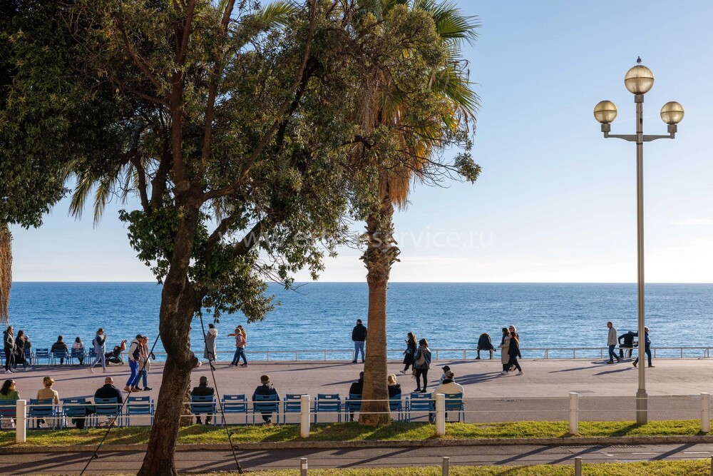 Апартаменты в роскошном Belle Epoque здании с лифтом возле пляжа, оперы и Place Masséna. Общая площадь квартиры 140 m² (жилая 126 m²) - прихожая, уютная гостиная 28 m² с камином и столовая с видом на море, две спальни с выходом на общую веранду 15 m², одна со своей ванной комнатой (ванная + душ), другая с душевой, отдельная кухня с подсобкой и общая ванная комната с раковиной и туалетом. Высота потолков 3.1 метра, качественная отделка, большая кладовая, кондиционер.