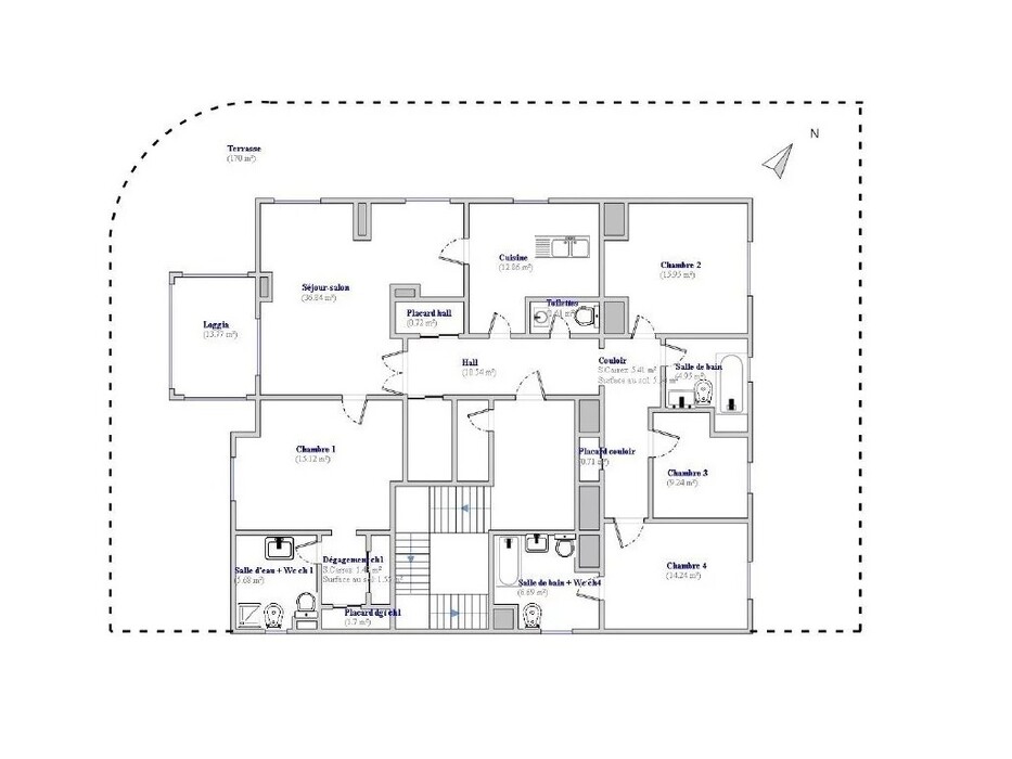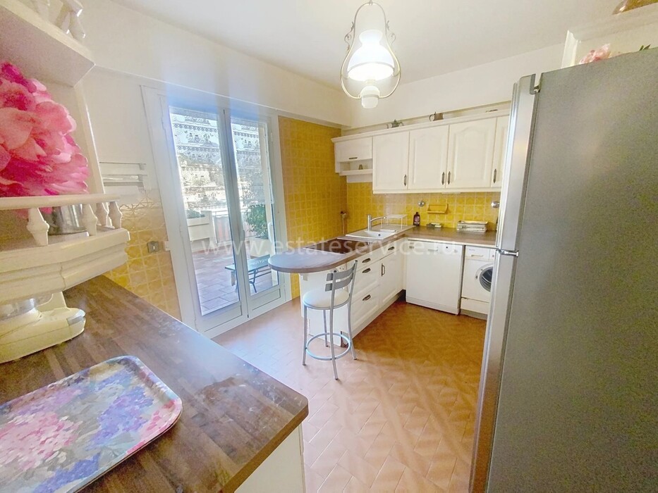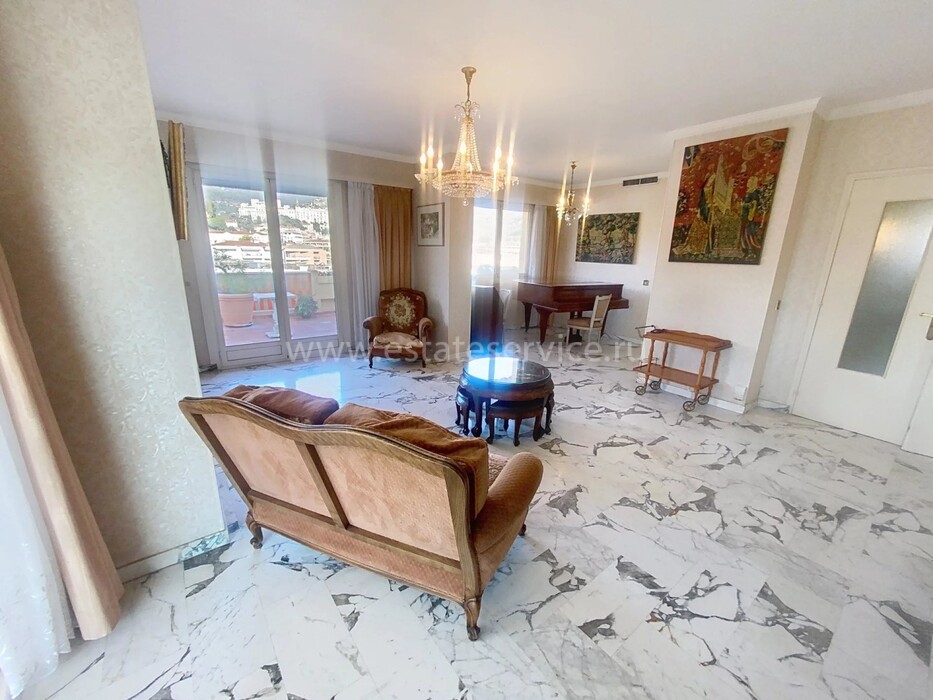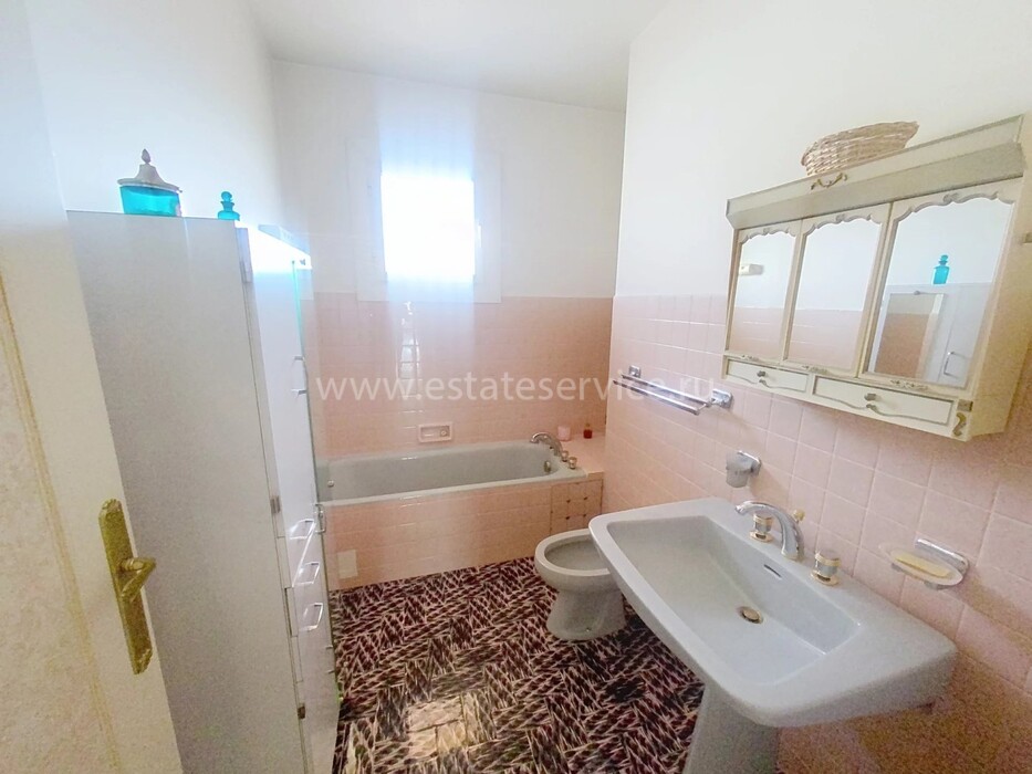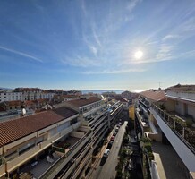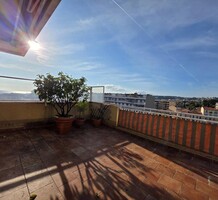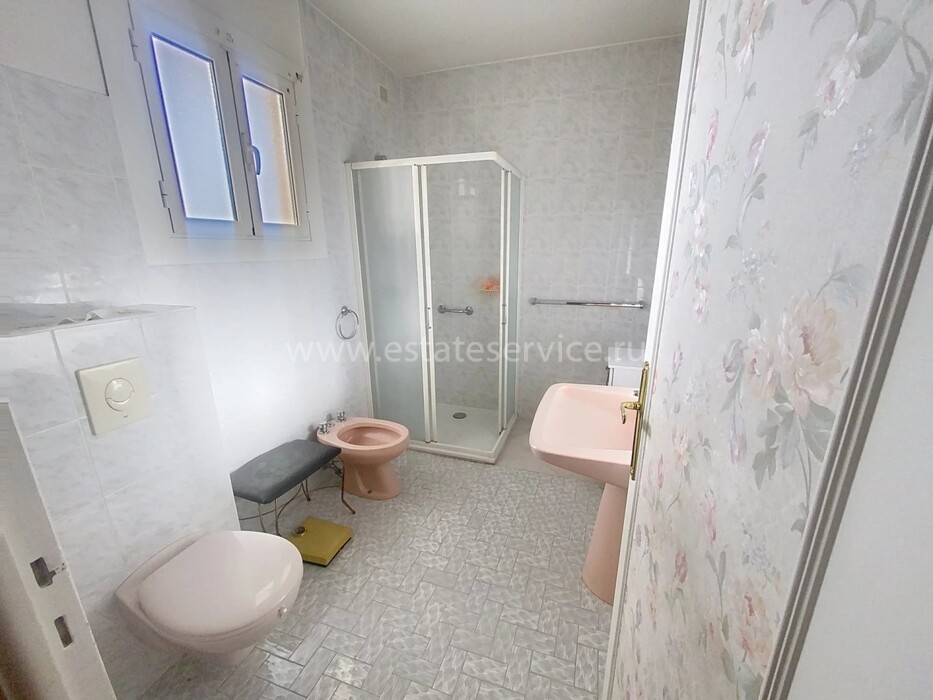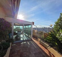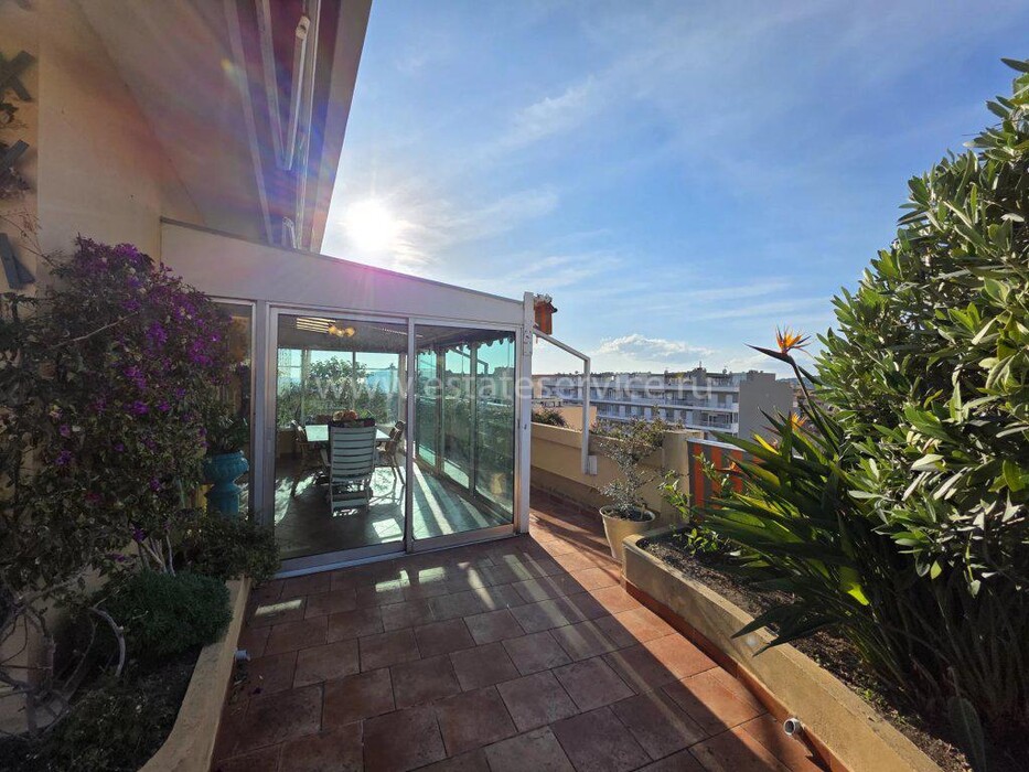 Квартира под обновление на верхнем этаже резиденции в 200-х метрах от моря. Жилая площадь 144 m² + терраса 170 m² и лоджия 13.7 m² - прихожая 10.5 m², светлая гостиная 36.8 m², отдельная кухня 12.8 m², четыре спальни 9.2, 14, 15 и 15.9 m², две ванные комнаты, душевая с туалетом и отдельный санузел. Большой потенциал, включены кладовая 5 m² и гараж 16.6 m². Коммунальные платежи 516 €.