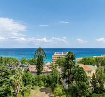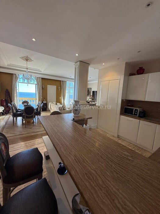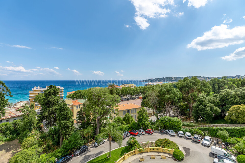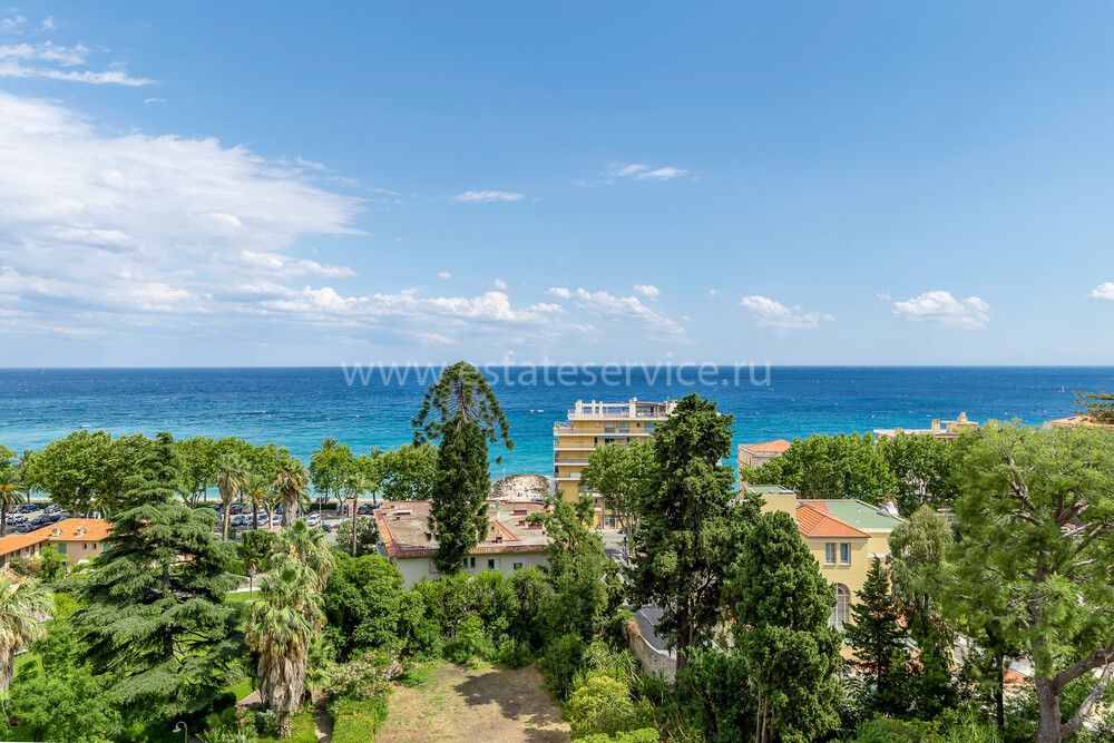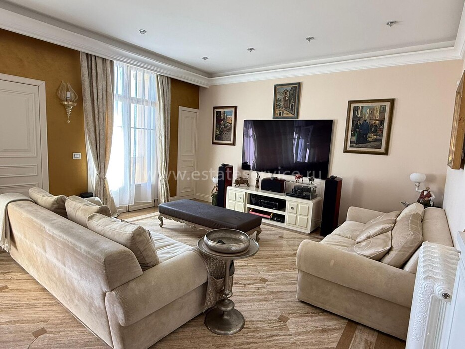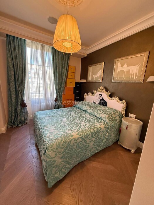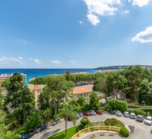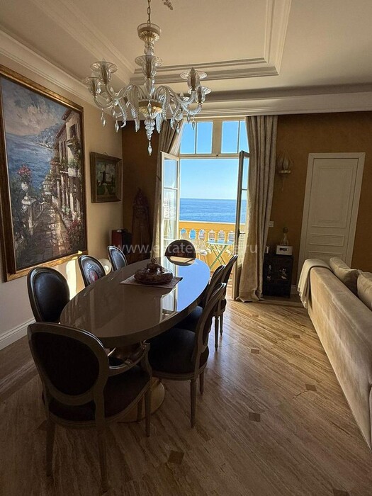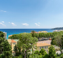 Апартаменты с ремонтом на верхнем (седьмом) этаже престижного дворца Belle Époque с лифтом, зелёной зоной и паркингом в нескольких шагах от моря. Жилая площадь 143 m² + три балкона, в квартире - широкая прихожая с гардеробной, солнечная гостиная 53 m² с зоной столовой и примыкающей кухней, три просторные спальни, ванная комната, две душевые с туалетами и отдельный санузел. Высокие потолки 3.5 метра, центральное отопление, большая кладовая, гараж с частным винным погребом. Владельцам принадлежит отдельная гостевая студия с мини-кухней и сауной.