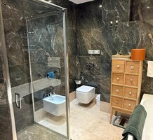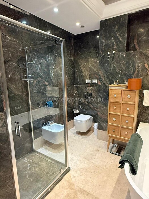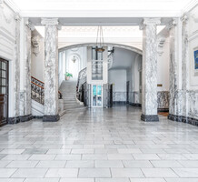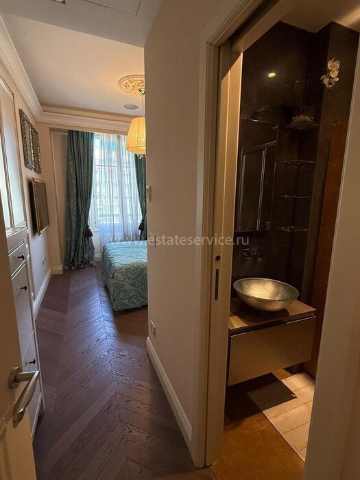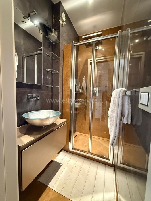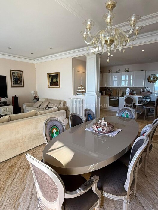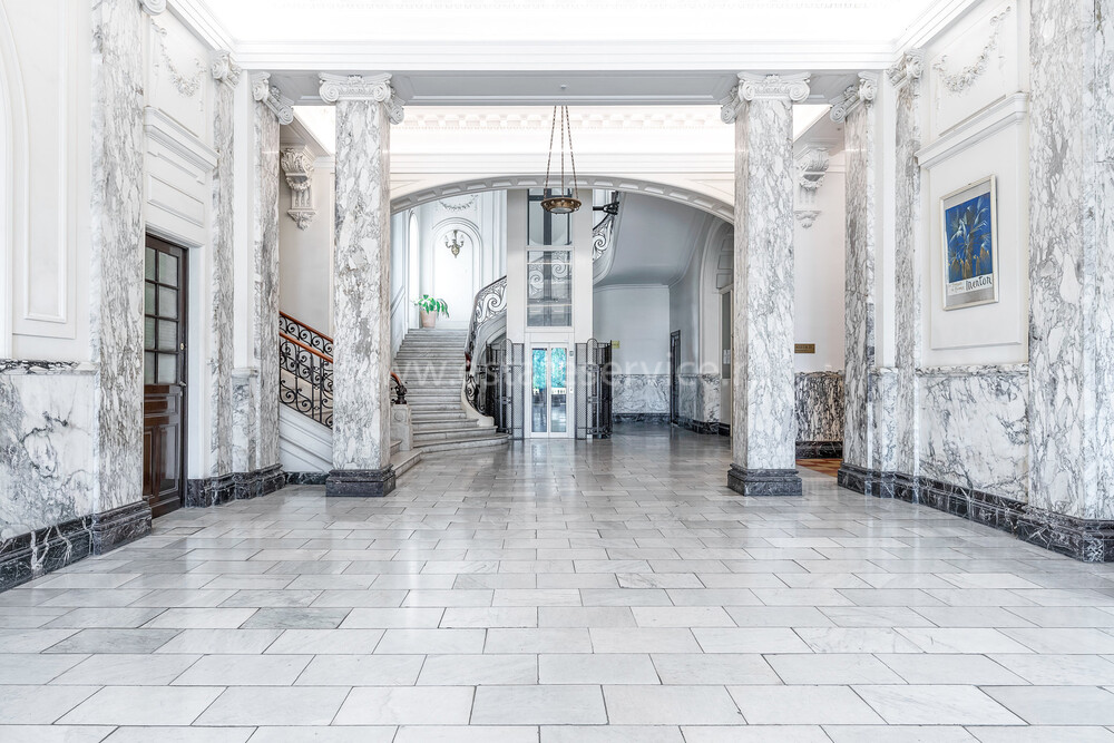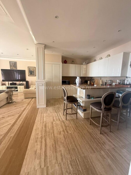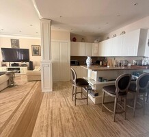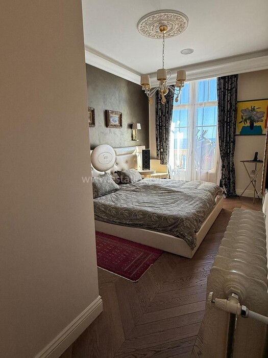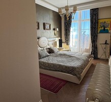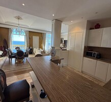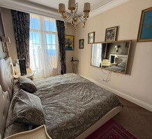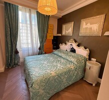 Апартаменты с ремонтом на верхнем (седьмом) этаже престижного дворца Belle Époque с лифтом, зелёной зоной и паркингом в нескольких шагах от моря. Жилая площадь 143 m² + три балкона, в квартире - широкая прихожая с гардеробной, солнечная гостиная 53 m² с зоной столовой и примыкающей кухней, три просторные спальни, ванная комната, две душевые с туалетами и отдельный санузел. Высокие потолки 3.5 метра, центральное отопление, большая кладовая, гараж с частным винным погребом. Владельцам принадлежит отдельная гостевая студия с мини-кухней и сауной.
