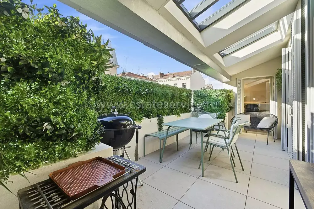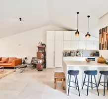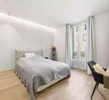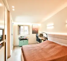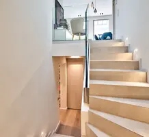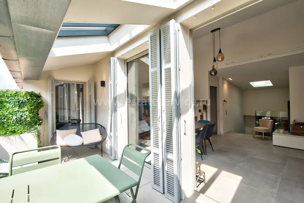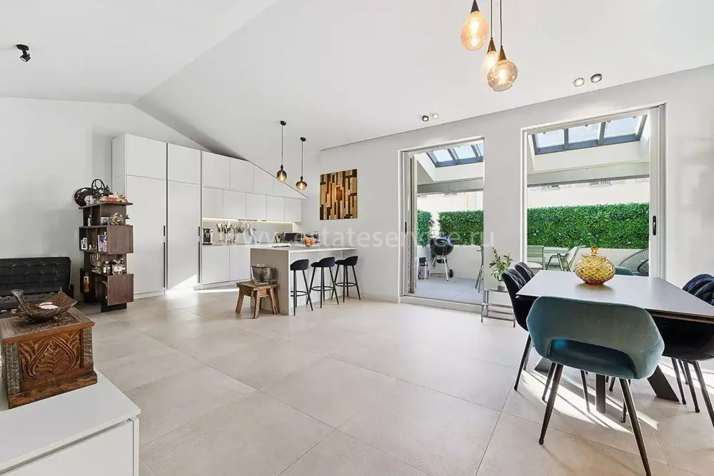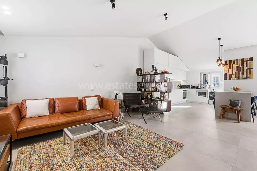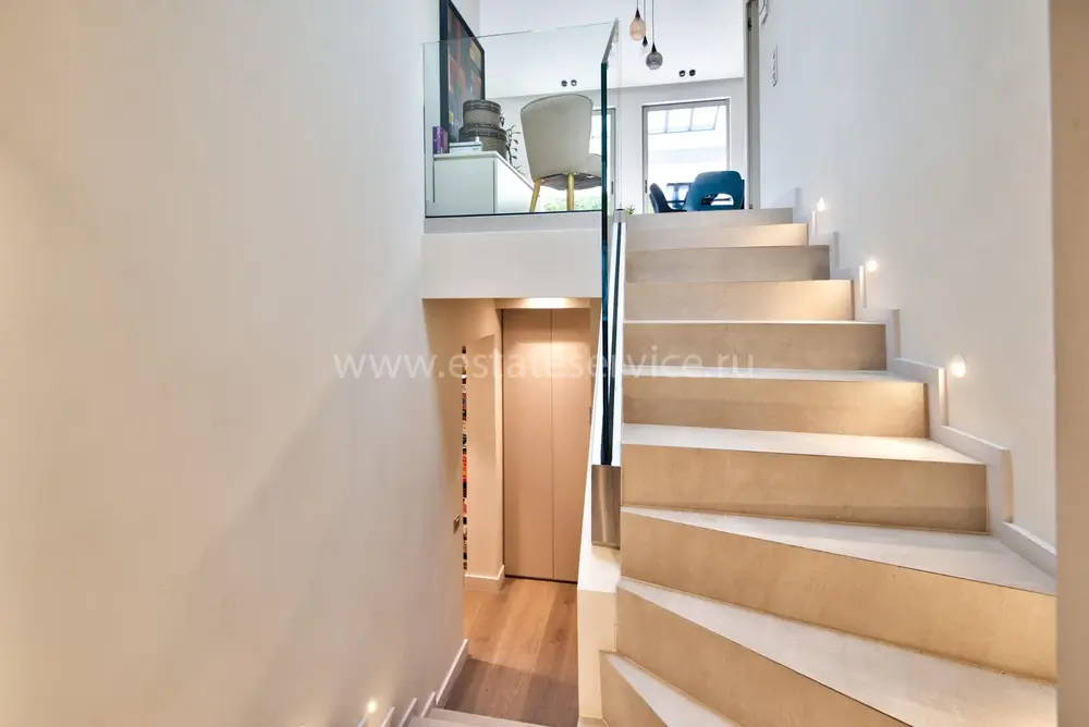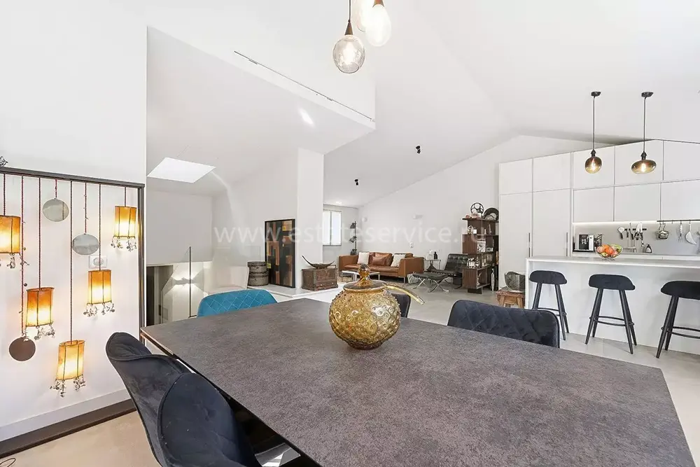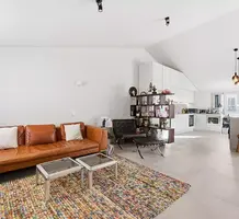Стильная двухуровневая квартира на верхнем этаже (частный доступ на лифте) отремонтированного здания всего на 4 апартамента. Общая площадь 154 m² (жилая 132.7 m²) - прихожая, тройная гостиная 56 m² с открытой кухней и функциональной террасой, четыре спальни, ванная, две душевые и два туалета. Шикарная отделка, высокие потолки, кладовая, можно купить паркинг. Коммунальные платежи 202 €, годовой налог 2.638 €.