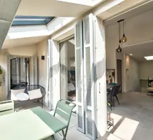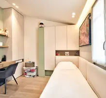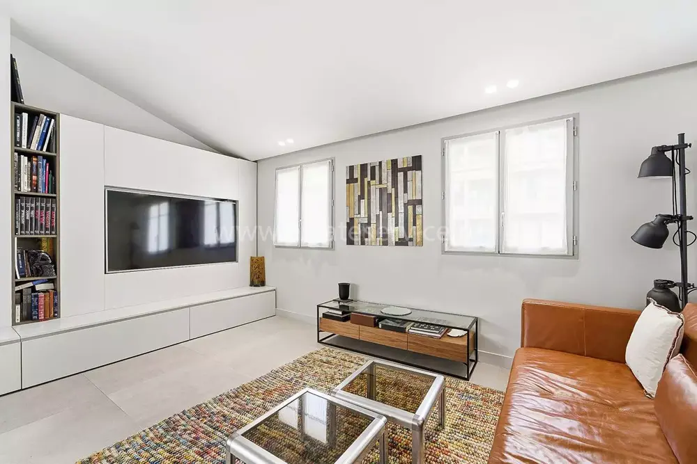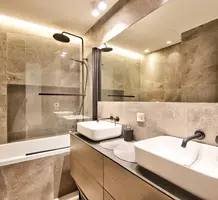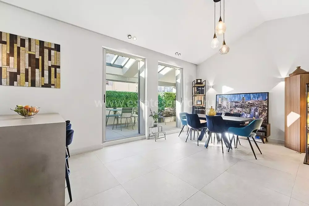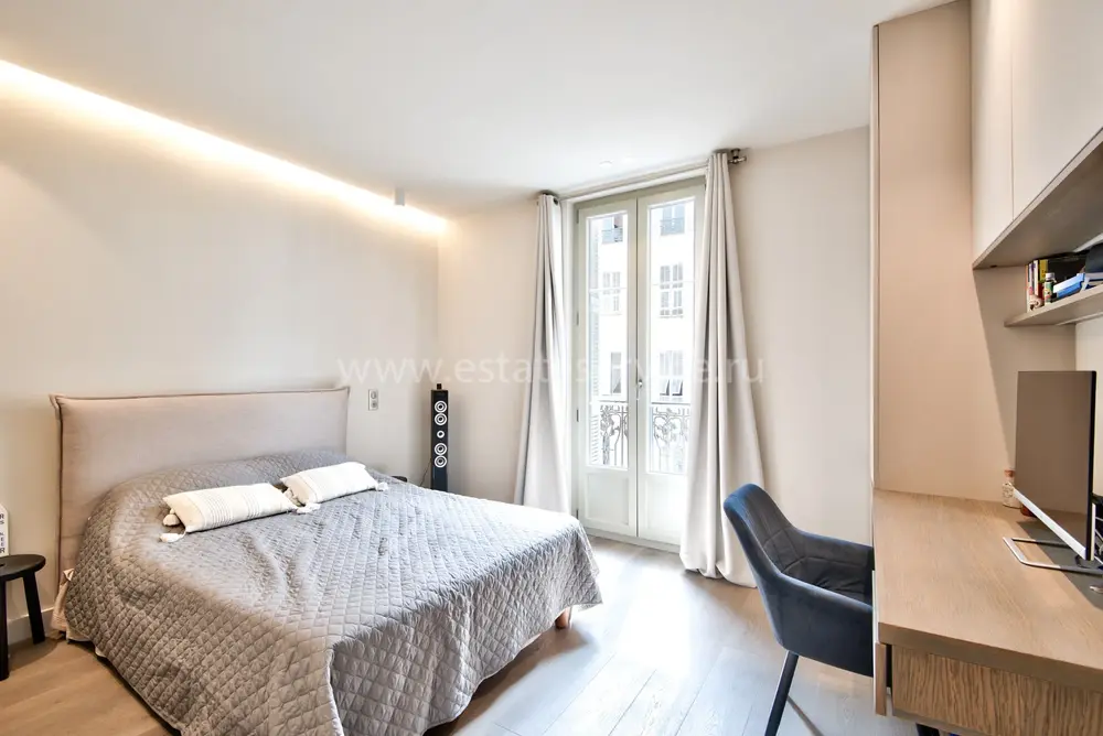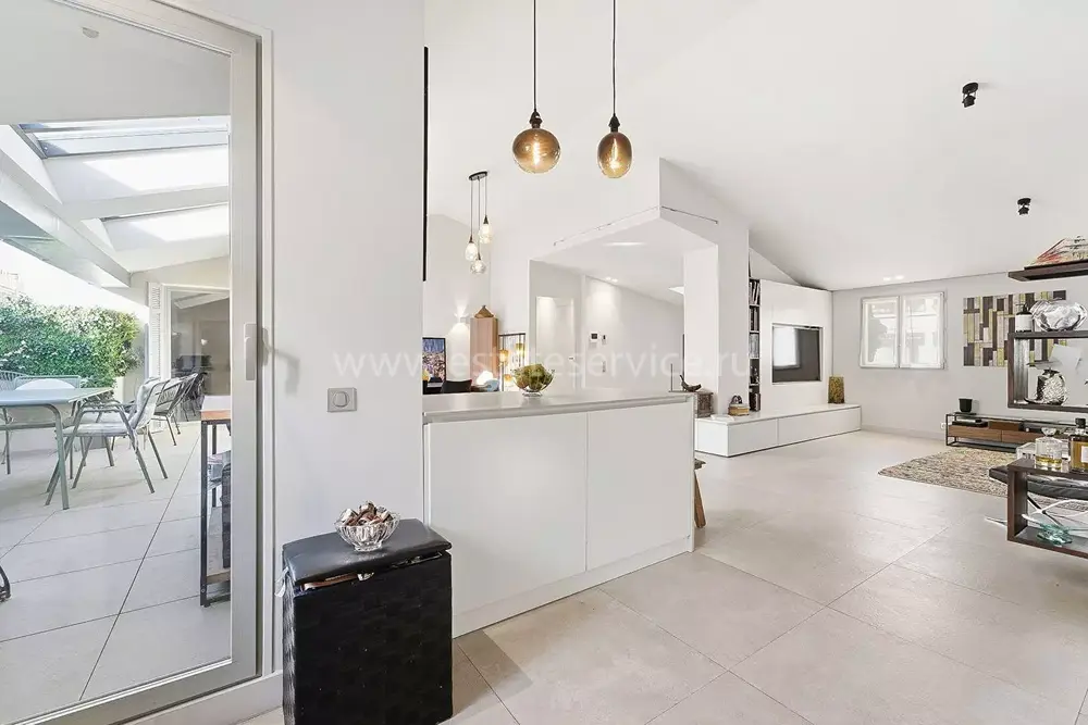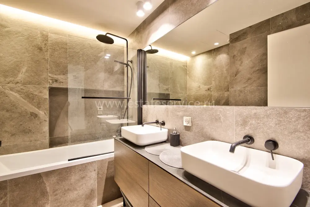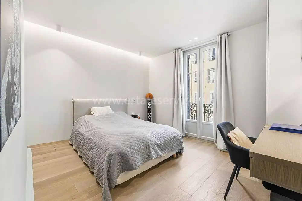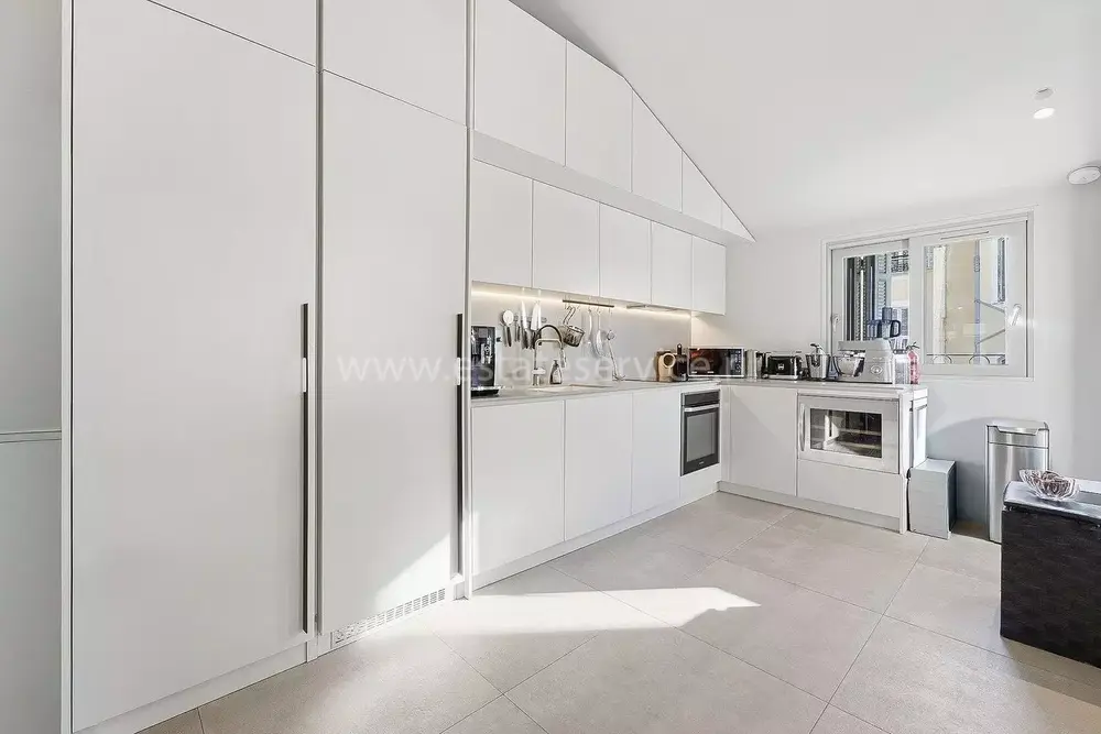 Стильная двухуровневая квартира на верхнем этаже (частный доступ на лифте) отремонтированного здания всего на 4 апартамента. Общая площадь 154 m² (жилая 132.7 m²) - прихожая, тройная гостиная 56 m² с открытой кухней и функциональной террасой, четыре спальни, ванная, две душевые и два туалета. Шикарная отделка, высокие потолки, кладовая, можно купить паркинг. Коммунальные платежи 202 €, годовой налог 2.638 €.