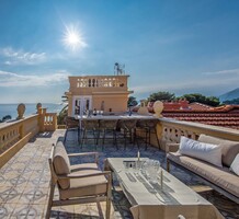 Дуплекс на верхнем этаже особняка Belle Epoque с лифтом всего в 30-ти метрах от моря. Жилая площадь 135 m² + террасы 115 m², в квартире - прихожая, гостиная с примыкающей кухней, две спальни с душевыми и просторным балконом, на крыше - частная терраса с летней кухней и шикарным видом. Качественный ремонт, включено парковочное место, все удобства рядом.