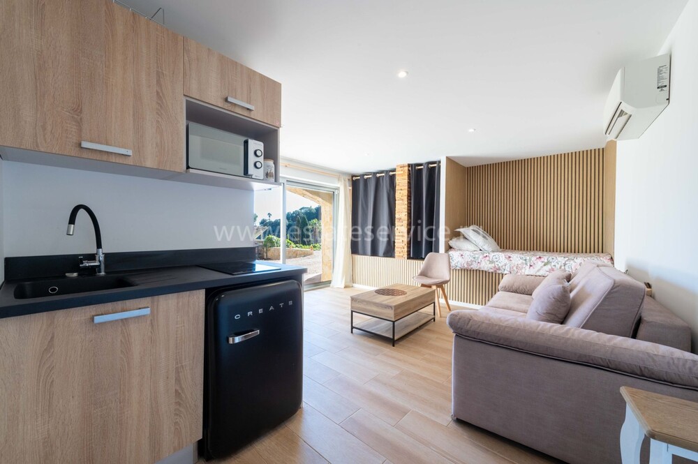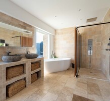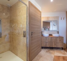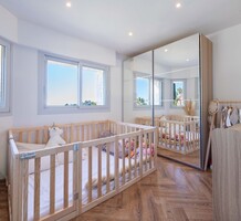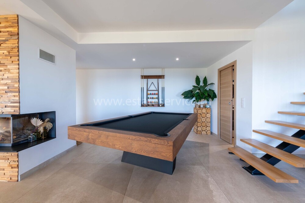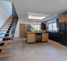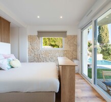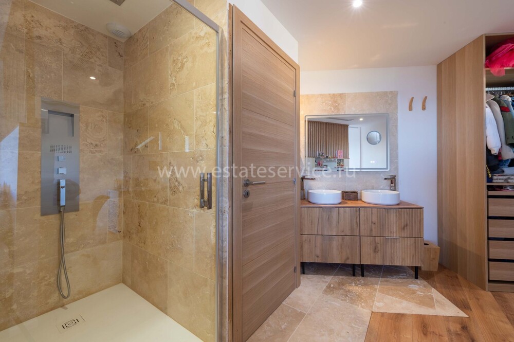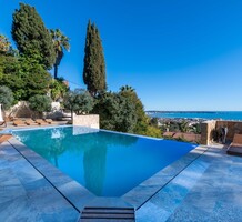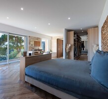 Полностью отреставрированная вилла с удобным расположением в двух километрах от пляжей. Жилая площадь 229 m², на участке 1.200 m² много зелени, зона отдыха с панорамным бассейном, летняя кухня, детская площадка, теннисный корт и парковка на 8 автомобилей. На первом этаже светлая гостиная-столовая с современным камином, открытой островной кухней и выходом на террасу, спальня с душевой, гардеробной и отдельным туалетом, а также независимая гостевая студия. Наверху разместились главная спальня с гардеробной и ванной комнатой, и ещё две спальни с общей душевой, все с террасами. Качественные материалы, шикарные виды на море и окрестности, близость инфраструктуры и основных удобств.