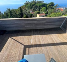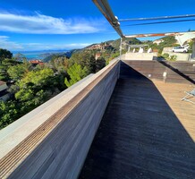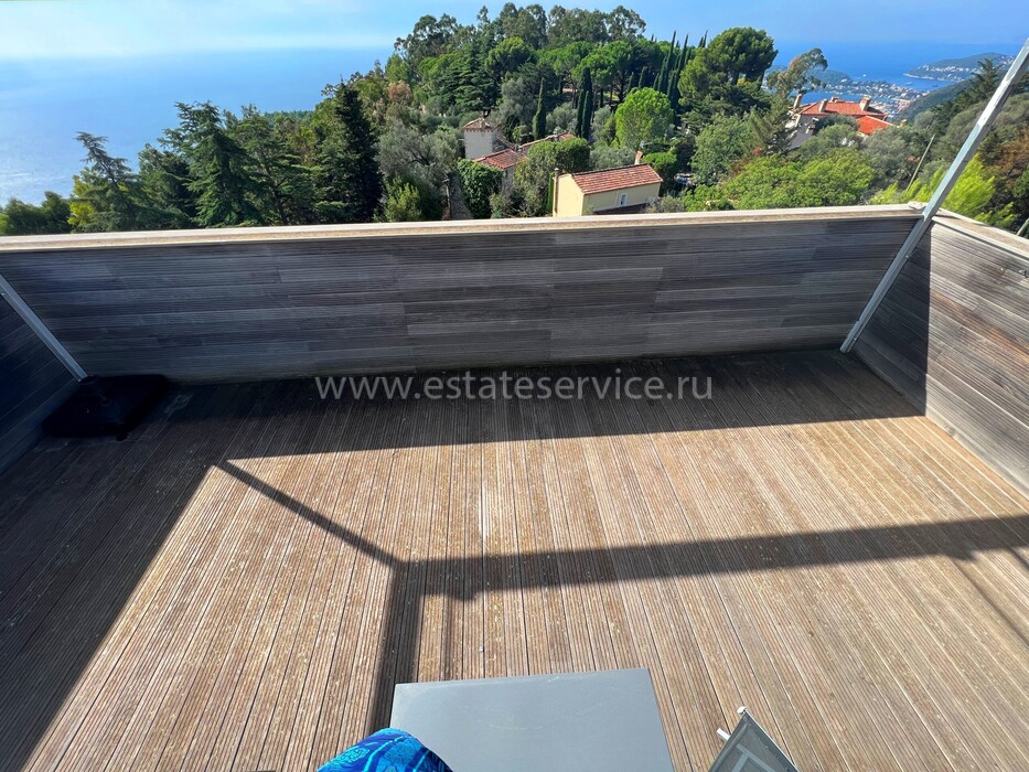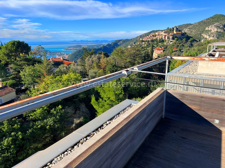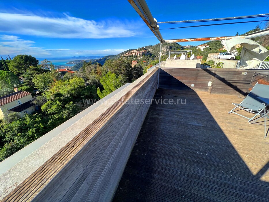 Дуплекс в закрытой резиденции всего на шесть апартаментов в 8-ми километрах от границы с Княжеством, спокойный сектор на холмах Eze. Общая площадь 52.5 m² (жилая 44.4 m²) - гостиная 27 m² с открытой кухней и лоджией 8.1 m², спальня 10.5 m² с гардеробной, ванная комната 5.8 m² с ванной и туалетом, а также терраса 30 m² на крыше с шикарной 180°-й панорамой на море, Cap-Ferrat и деревню Эз. Комплекс 2006 года постройки, отличное состояние, есть кладовая, можно оборудовать небольшое спа на крыше, купить паркинг - 40.000 €. Всего 3 минуты от шоссе, 20 минут от аэропорта Ниццы, ходит прямой автобус до пляжа. Коммунальные платежи 177 €, годовой налог 880 €.