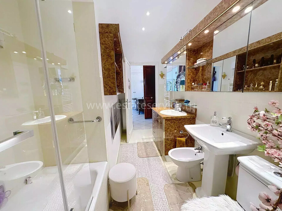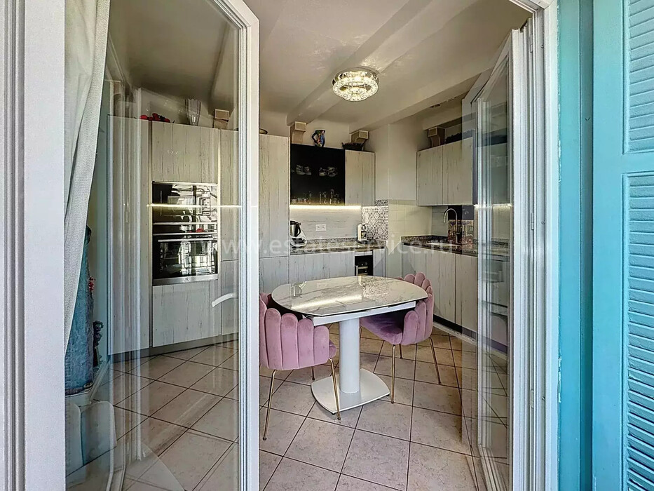 Апартаменты на верхнем (пятом) этаже солидного здания с лифтом в самом центре Ментона. Жилая площадь 50.8 m² - прихожая, гостиная 20 m² с камином, открытой кухней 13 m² и двумя балконами, спальня 12 m² со своим балконом, душевая комната с туалетом. Отличное состояние, высокие потолки, установлен кондиционер. Коммунальные платежи 111 €, годовой налог 851 €.