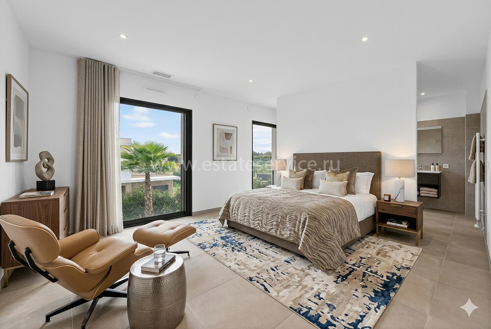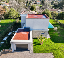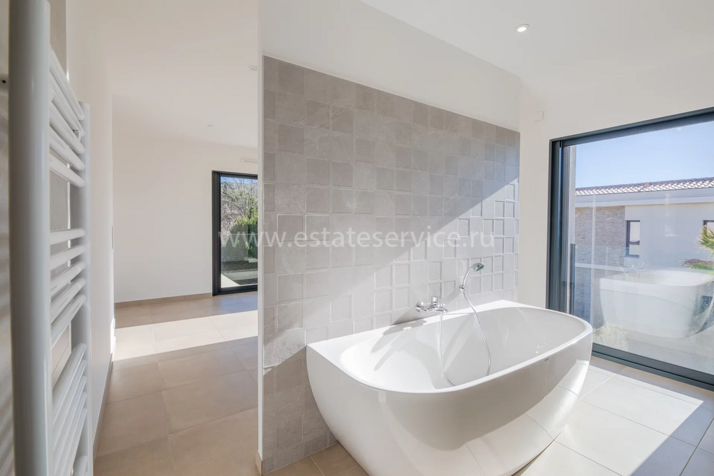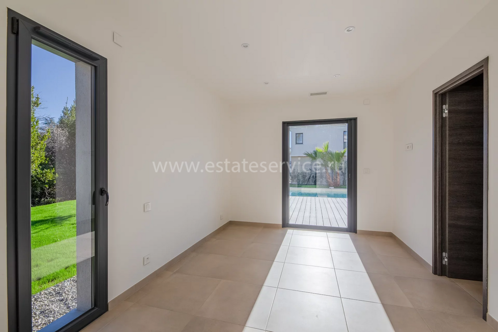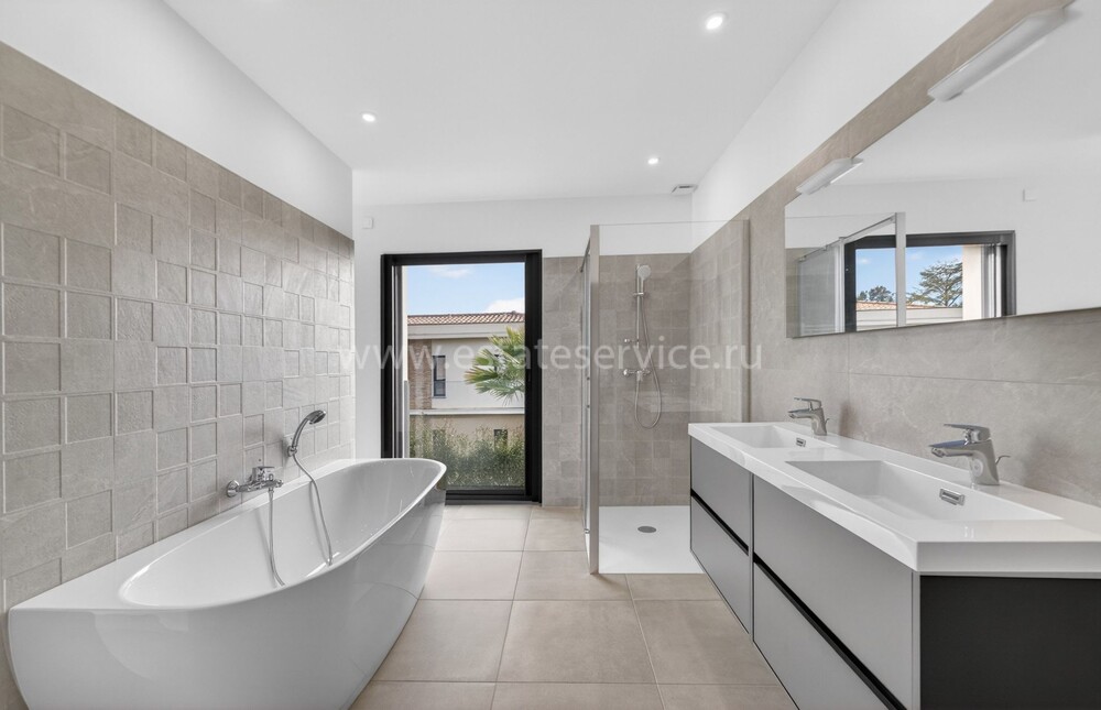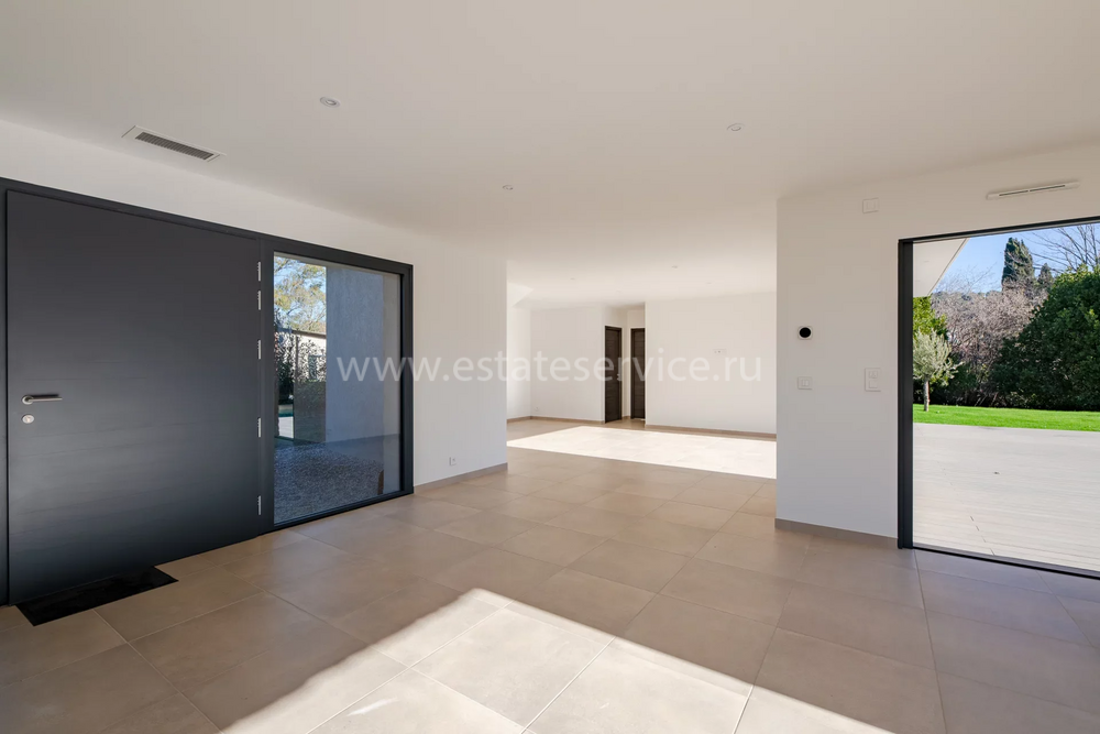 Современная вилла с удобным расположением в пяти километрах от Mougins School, Канн и моря. Жилая площадь дома 189 m² + гараж 50 m², ровный участок 1.229 m² с ландшафтным садом, газоном, бассейном и паркингом. На первом уровне большая гостиная-столовая с открытой (не установлена) кухней, кладовая, спальня с ванной комнатой, туалетом и закрытый гараж. Наверху разместились ещё три спальни, три ванные/душевые и прачечная. Качественные материалы и отделка, близость магазинов и основных удобств, готова к заселению!