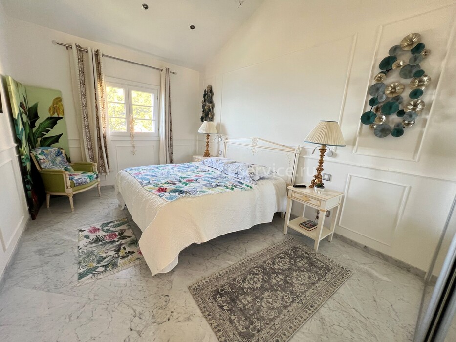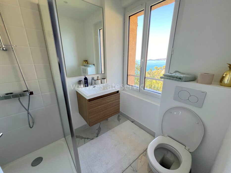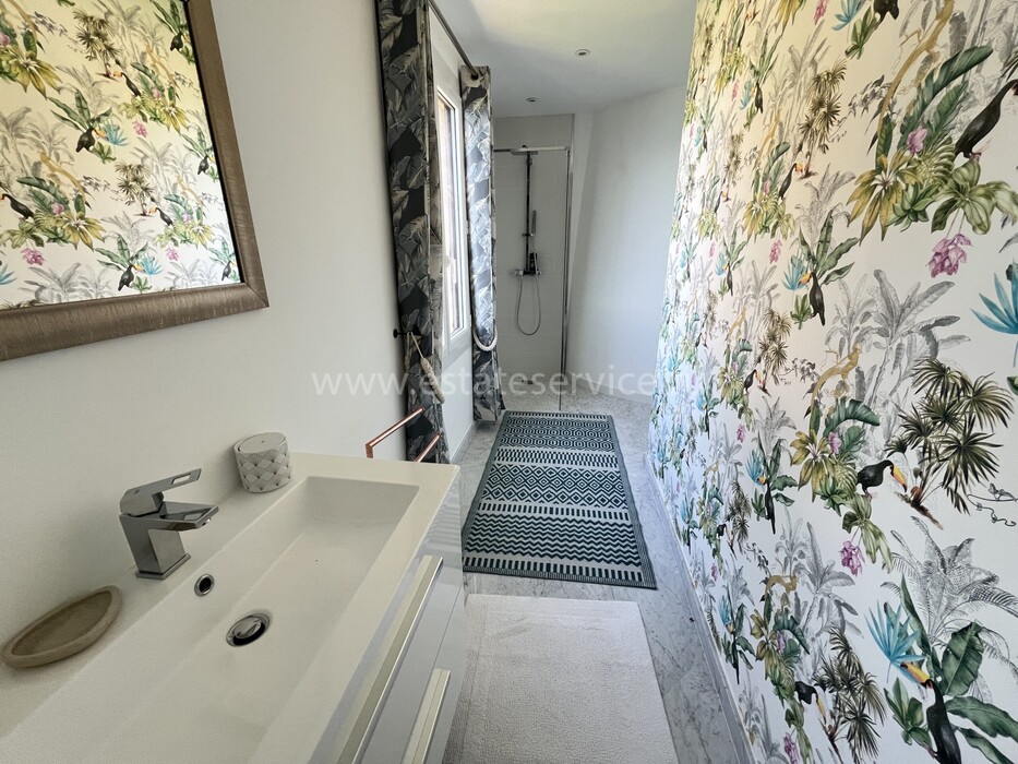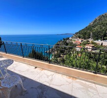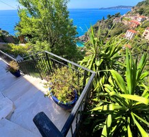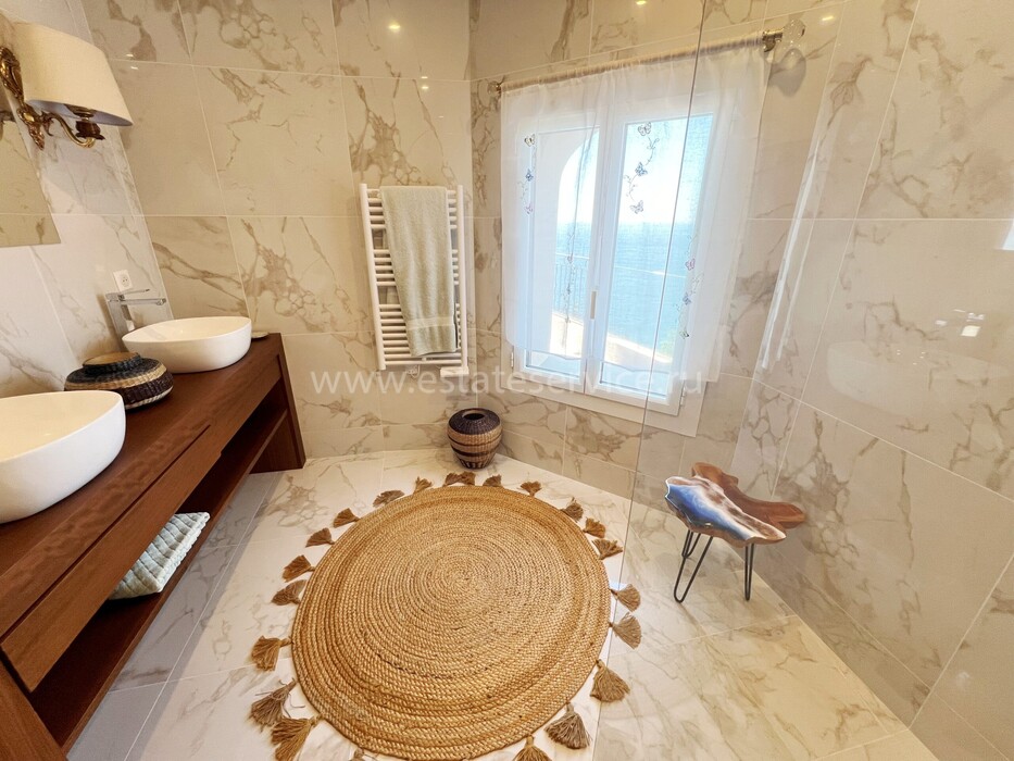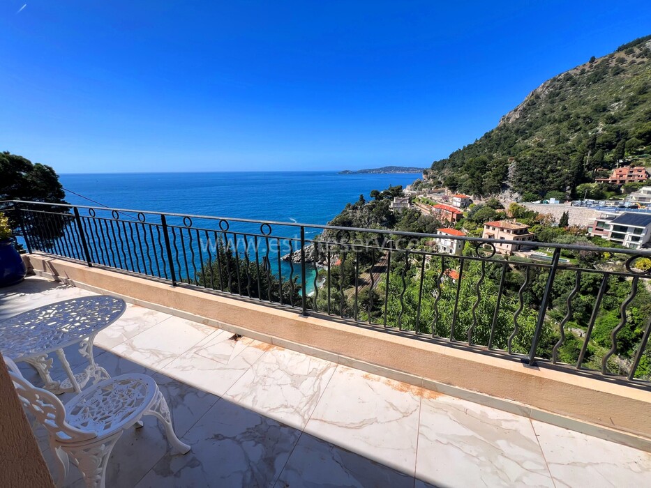 Ухоженная вилла с захватывающей панорамой на море и Кап-Ферра. Жилая площадь 400 m² + гараж 25 m², участок земли 5.000 m². Дом имеет два отдельных входа, в настоящее время разделён (легко объединить) на 4 независимых (каждый со своей кухней) апартамента. В целом на трёх уровнях разместились три гостиные, шесть спален, шесть ванных/душевых, кабинет, большой подвал, гараж и террасы. Хорошее состояние, есть место под бассейн, семь парковочных мест, пешая доступность моря, основных удобств и центра Кап-д'Ай.