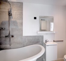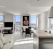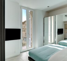 Ухоженная квартира в пешей доступности от Palais des Festivals. Жилая площадь 55 m² - светлая гостиная с открытой кухней и террасой, две спальни, одна с балконом и душевой, другая с ванной комнатой. Качественная отделка, открытый вид, самый центр Канн. Коммунальные платежи 116 €.