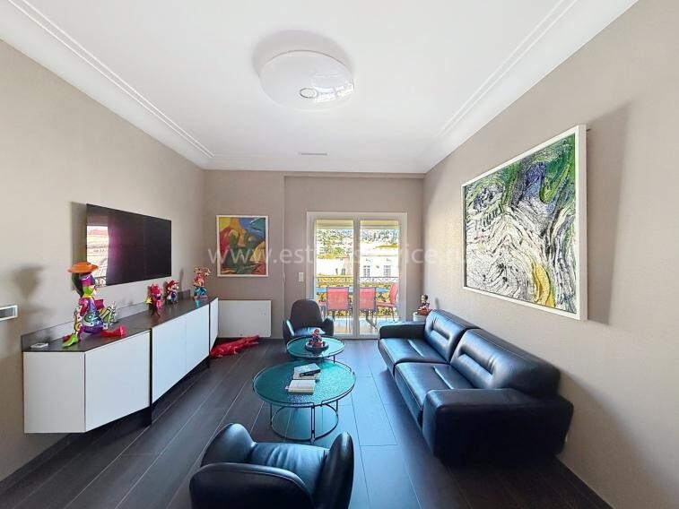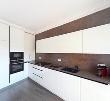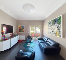 Полностью отремонтированная квартира на верхнем (пятом) этаже буржуазного здания с лифтом. Жилая площадь 95 m² + 2 больших балкона - прихожая, светлая гостиная с балконом, отдельная кухня со своим балконом, две просторные спальни с встроенными шкафами, ванная, прачечная, душевая комната и санузел. Высокие потолки, хорошая отделка, есть парковочное место (арендовано), продаётся с мебелью. Коммунальные платежи 250 €.