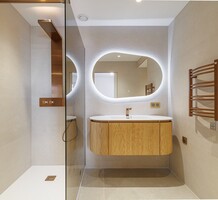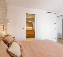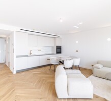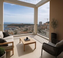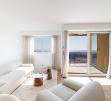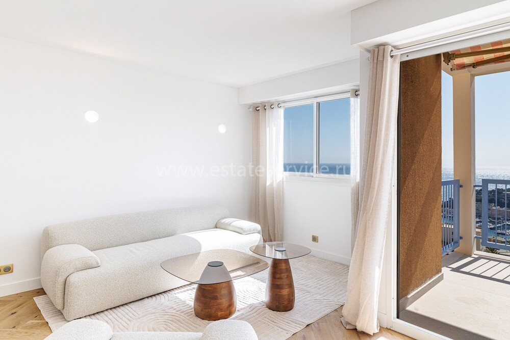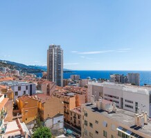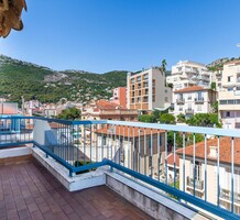 Обновлённая квартира на верхнем этаже резиденции с лифтом возле Княжества и основных удобств. Жилая площадь 64 m² - прихожая, гостиная с открытой кухней и панорамной террасой, две спальни, одна со своей душевой, санузел и вторая терраса. Качественные материалы, включена кладовая, можно купить гараж. Коммунальные платежи 120 €.
